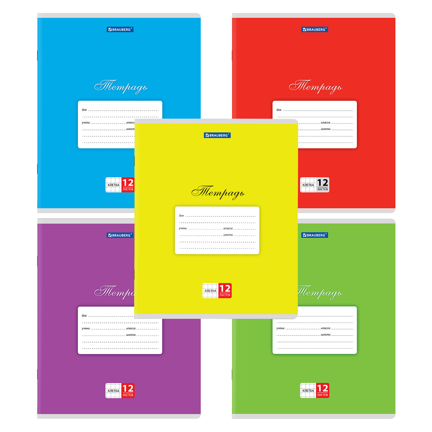 Тетради ДЭК 12 л. КОМПЛЕКТ 20 шт. BRAUBERG КЛАССИКА, клетка, обложка картон, АССОРТИ (5 видов), 106726