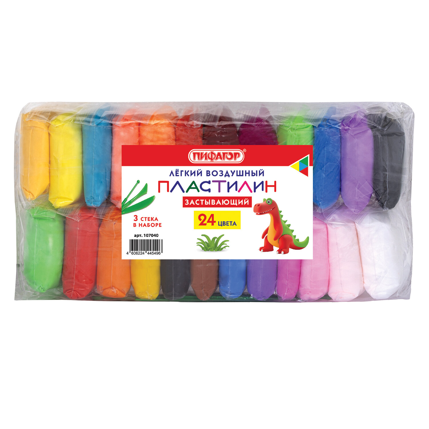 Пластилин супер лёгкий воздушный застывающий 24 цвета, 210 г, 3 стека, ПИФАГОР, 107040