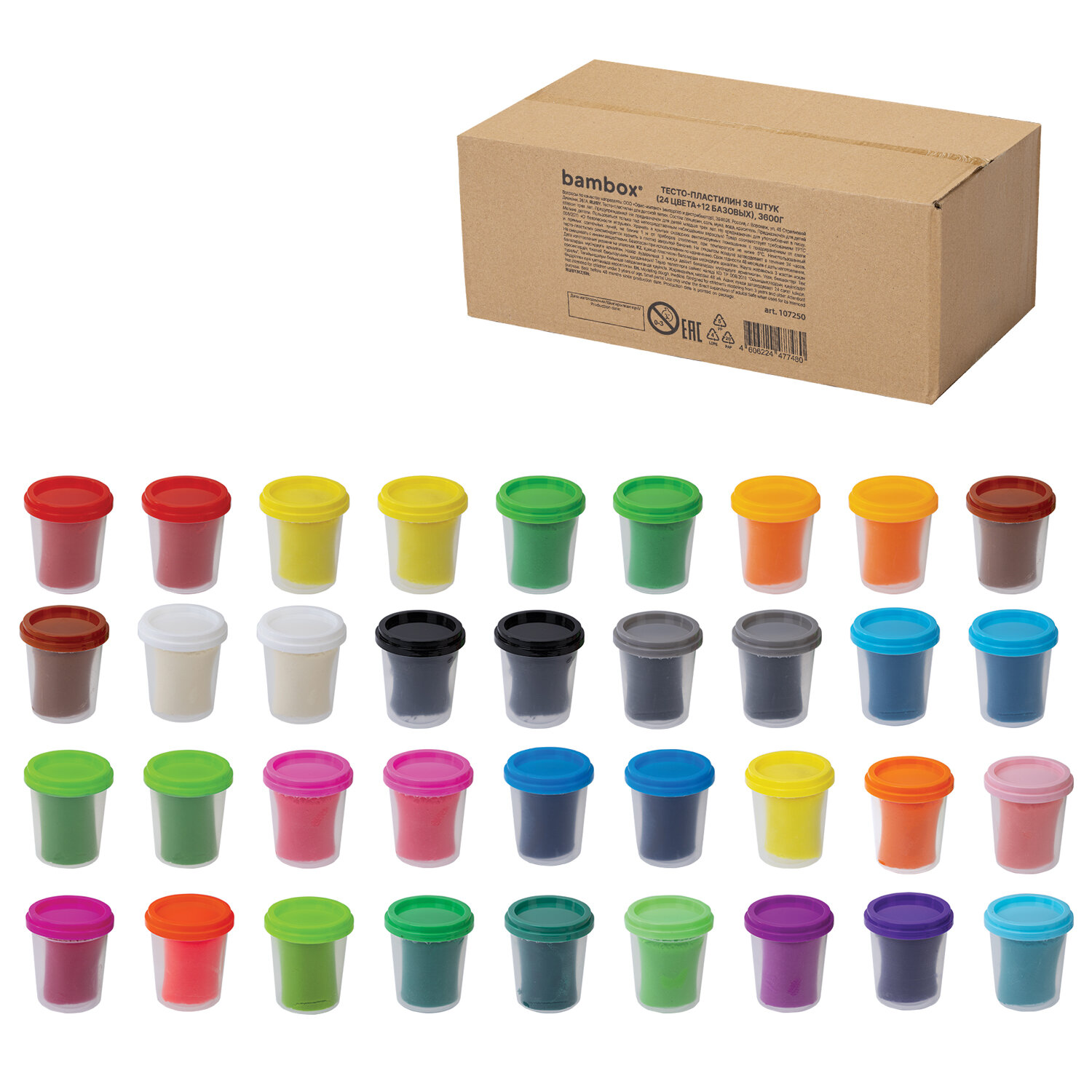 Тесто-пластилин для лепки СУПЕР ПЛАСТИЧНОЕ, 36 штук (24 цвета + 12 базовых), 3600 г, BAMBOX (БАМБОКС), 107250