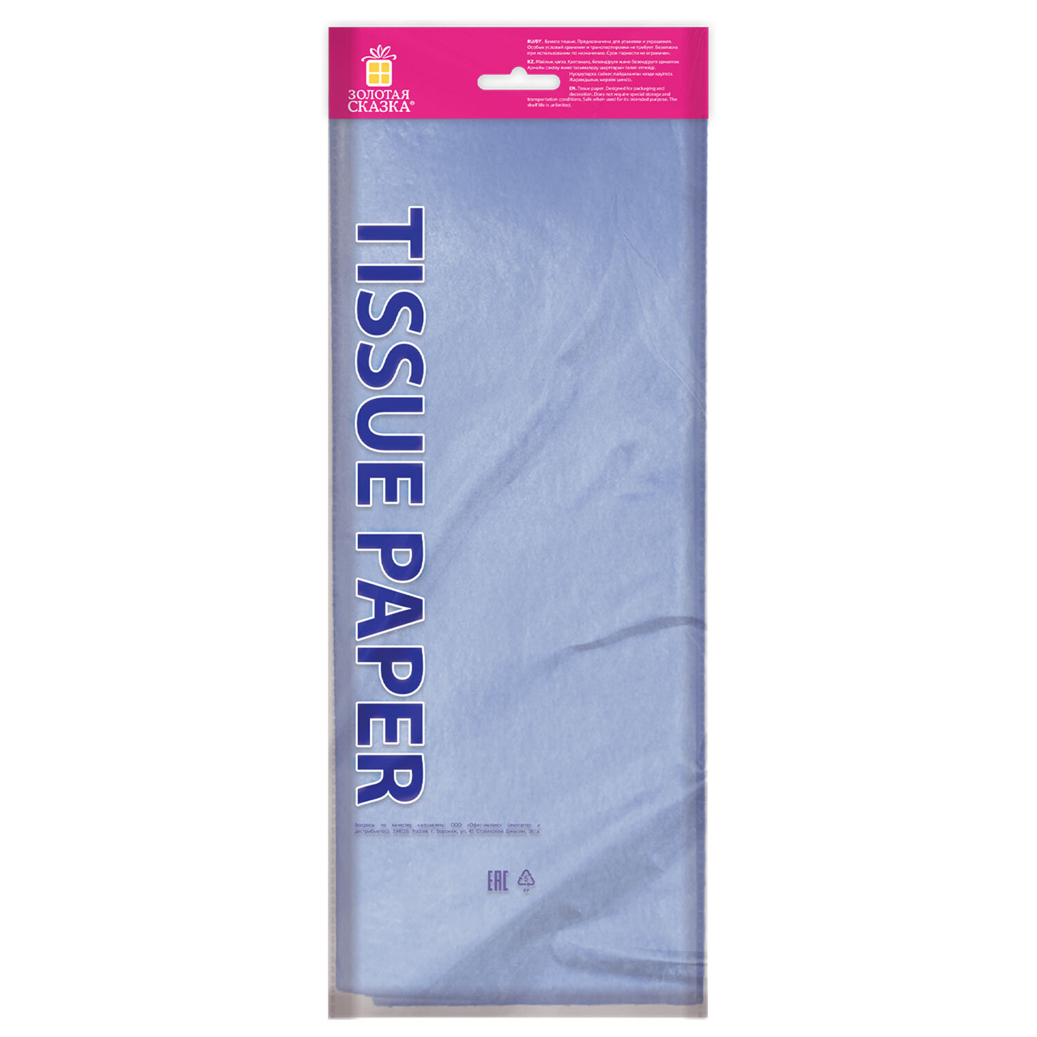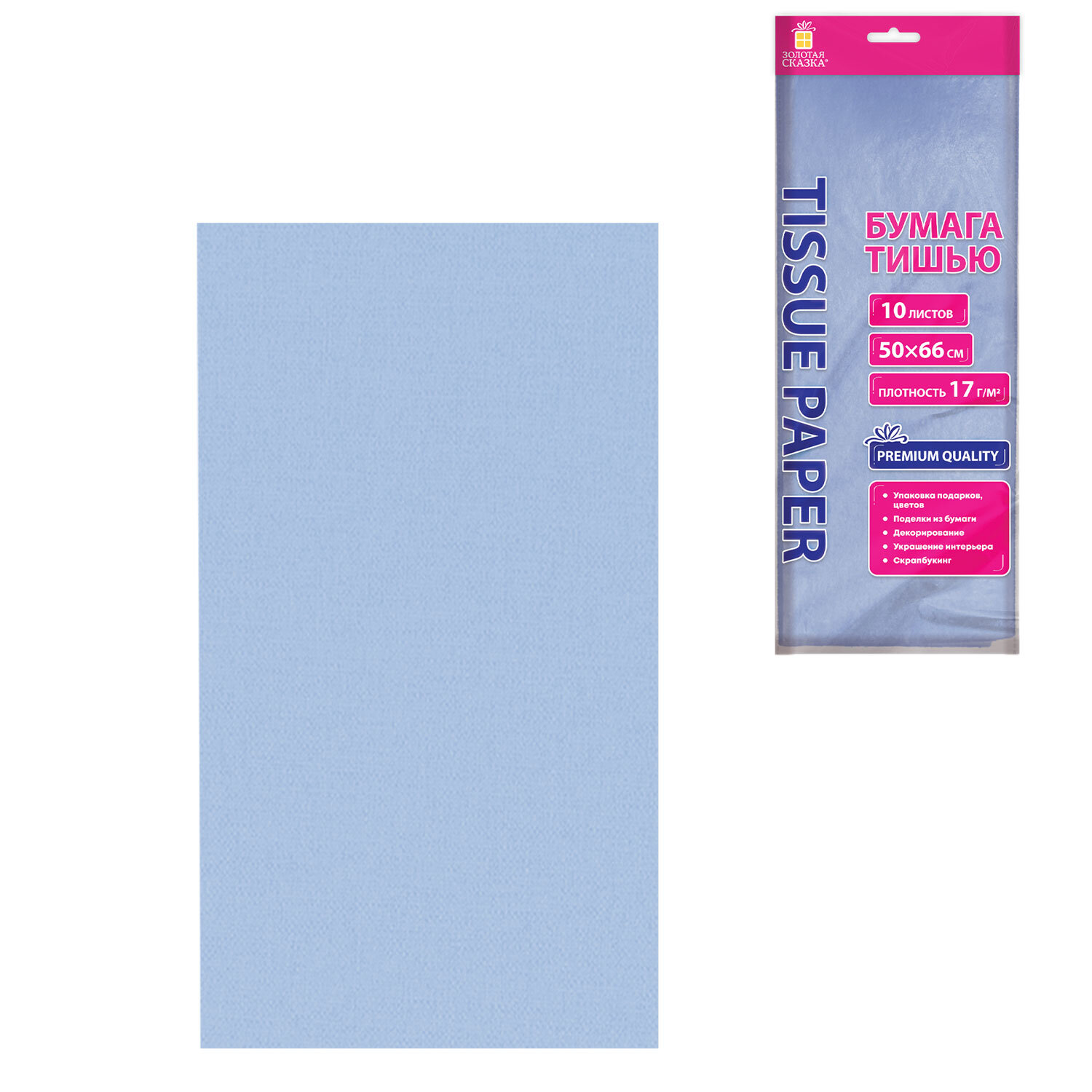 Цветная бумага ТИШЬЮ 17 г/м2, 50×66 см, 10 листов, голубой цвет, ЗОЛОТАЯ СКАЗКА, 116478