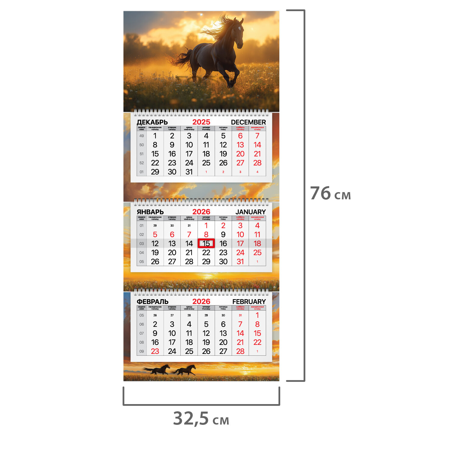 Календарь квартальный 2026 г., 3 блока, 3 гребня, бегунок, мелованная бумага, BRAUBERG PREMIUM, «Символ года», 116830