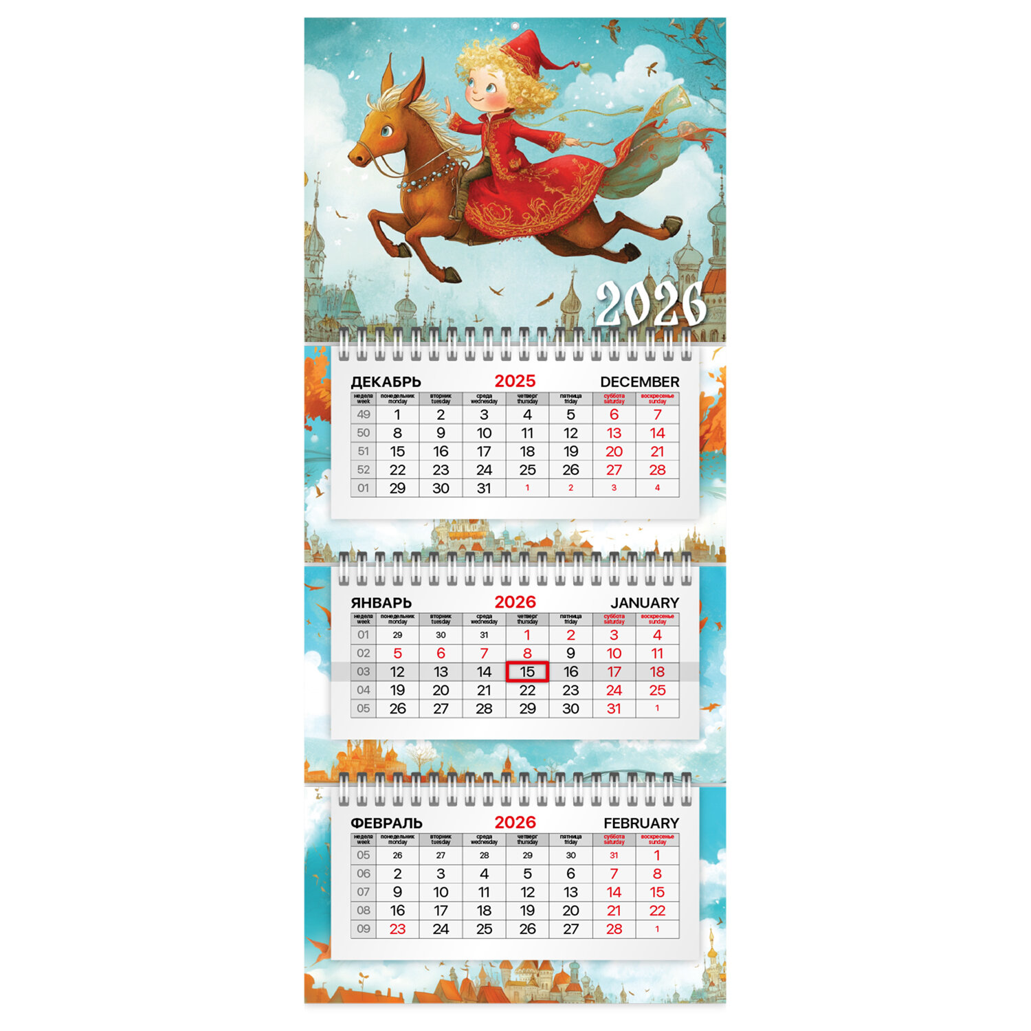 Календарь квартальный 2026 г., 3 блока, 3 гребня, бегунок, мелованная бумага, BRAUBERG EXTRA MINI, «Конёк», 116838