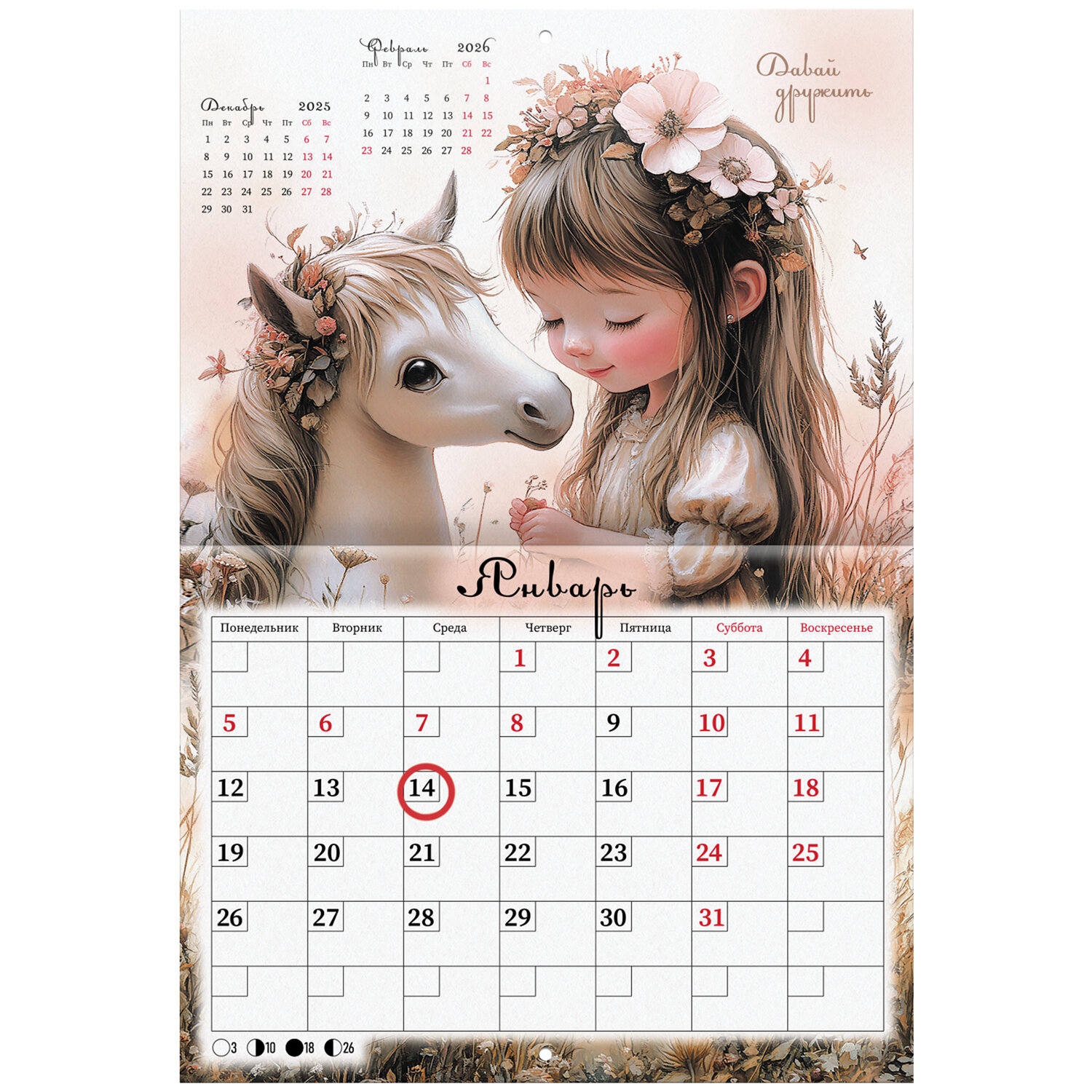 Календарь-планер настенный перекидной на 2026 г., BRAUBERG, 12 листов, 29,5×21,3 см, «Sweet pony», 116948