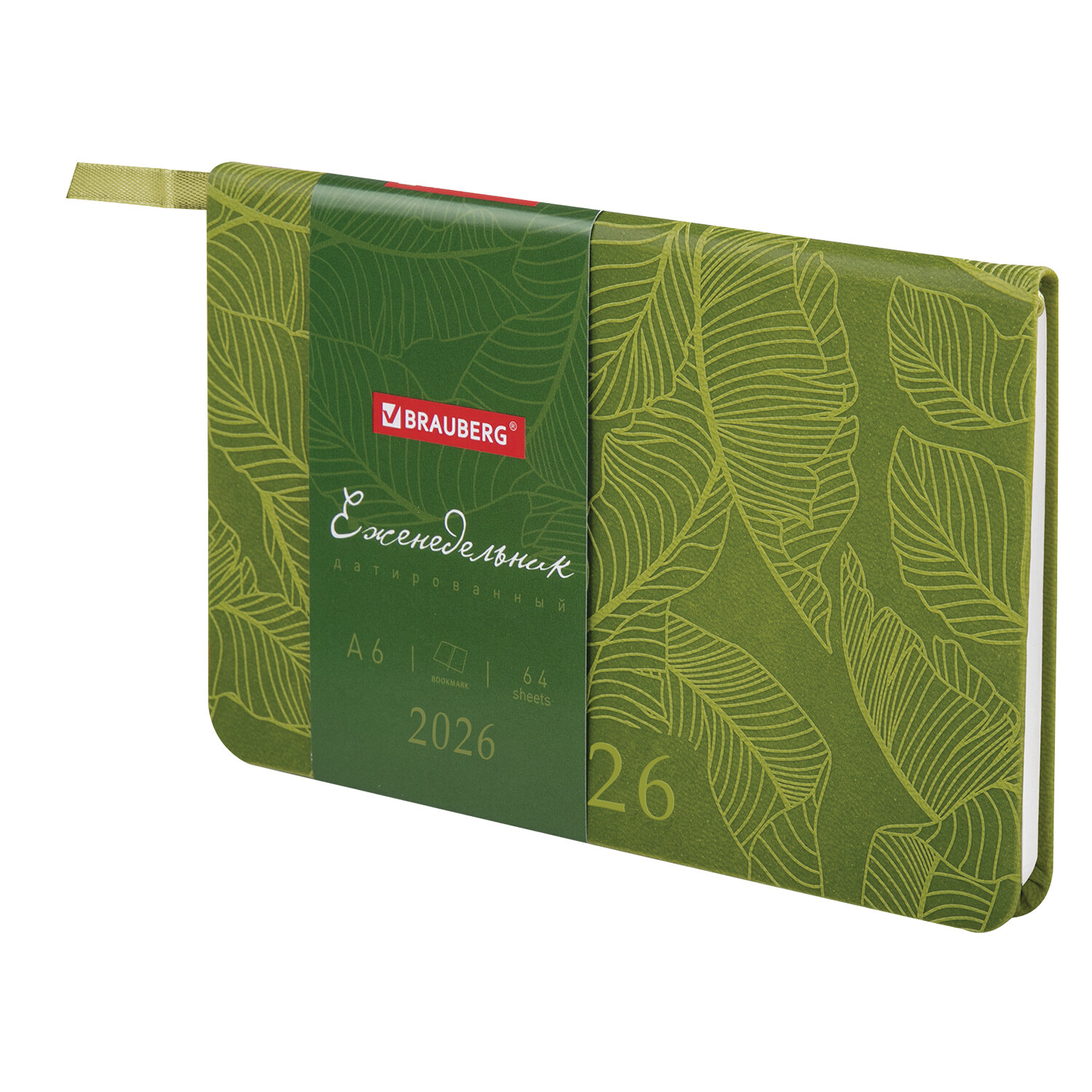 Еженедельник датированный 2026 МАЛЫЙ ФОРМАТ 95×155 мм, А6, BRAUBERG «Foliage», под кожу, зеленый, 117198