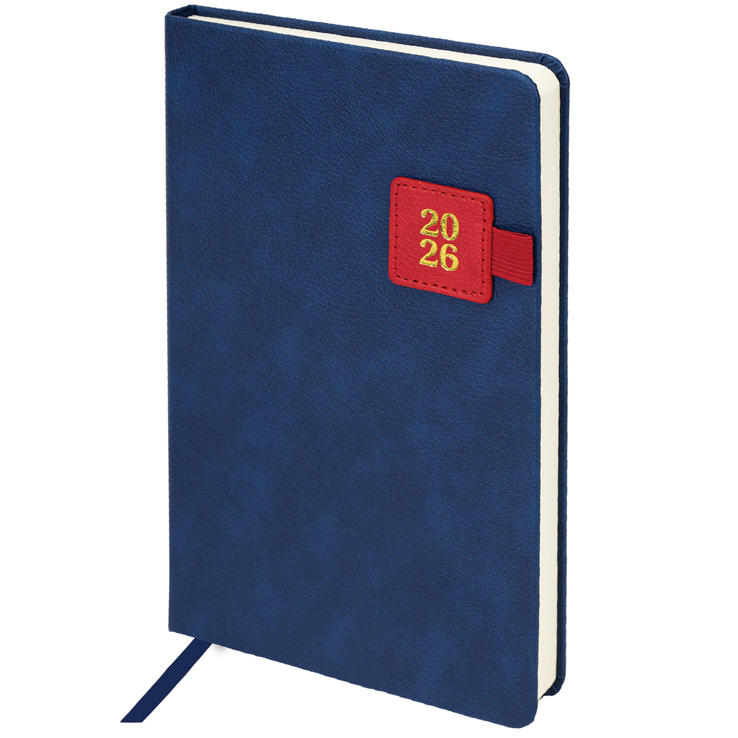 Ежедневник датированный 2026 А5 138×213 мм, BRAUBERG «Accent», под кожу, держатель, синий/красный, 117386