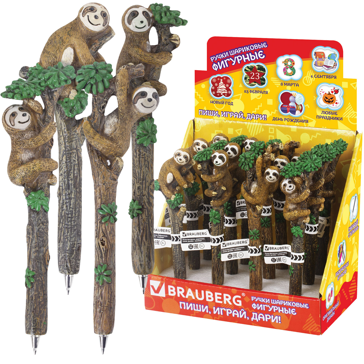 Фигурная шариковая ручка BRAUBERG «Ленивцы» – это почти произведение искусства. Каждая ручка уникальна, так как изготовлена вручную. Это одновременно и пишущий инструмент, и оригинальный подарок.