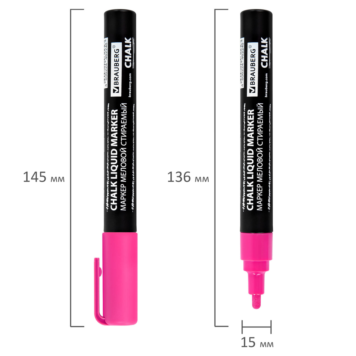 Стираемый меловой маркер BRAUBERG «CHALK» предназначен для создания рисунков и надписей на гладких и прозрачных невпитывающих поверхностях (например, зеркалах, стекле, меловой пленке). Подходит для школьных занятий, идеальны для детского творчества!