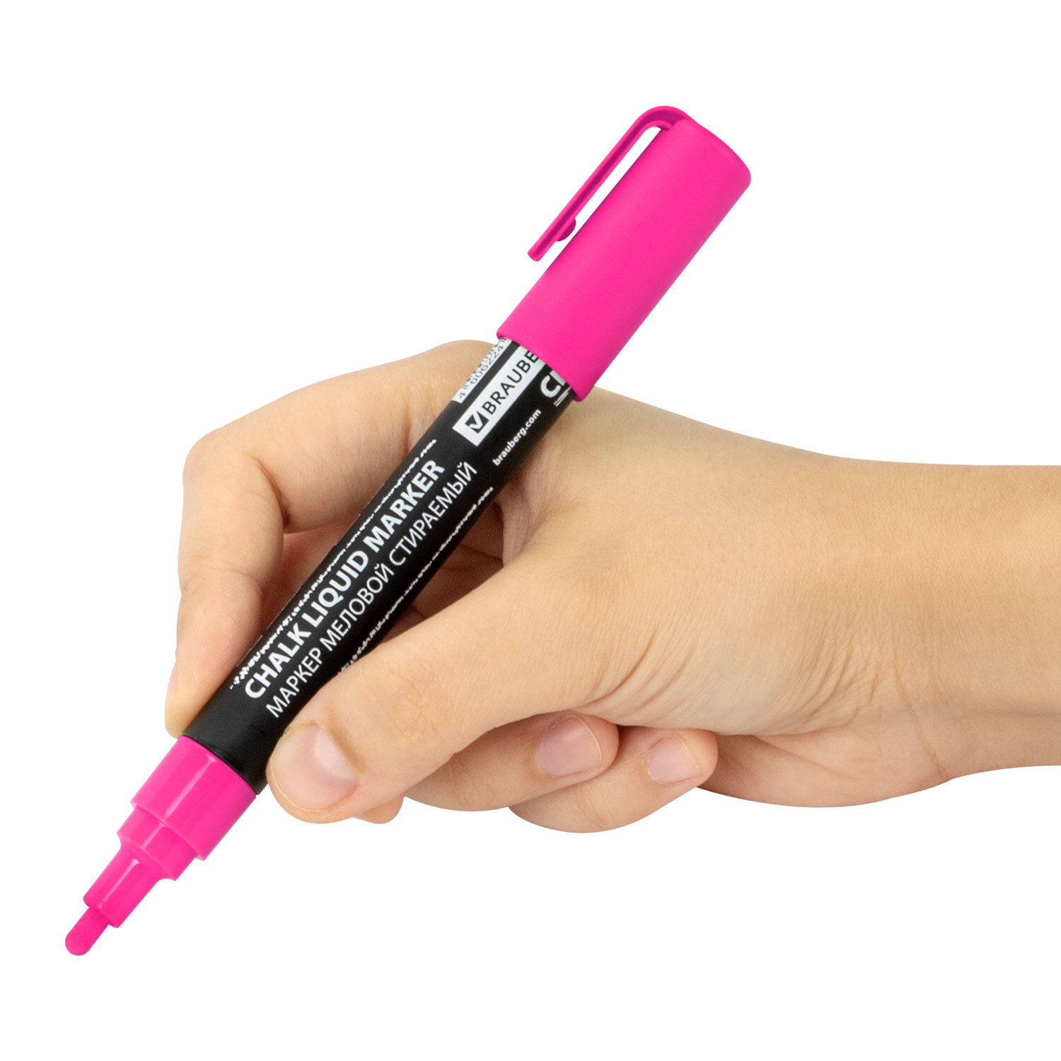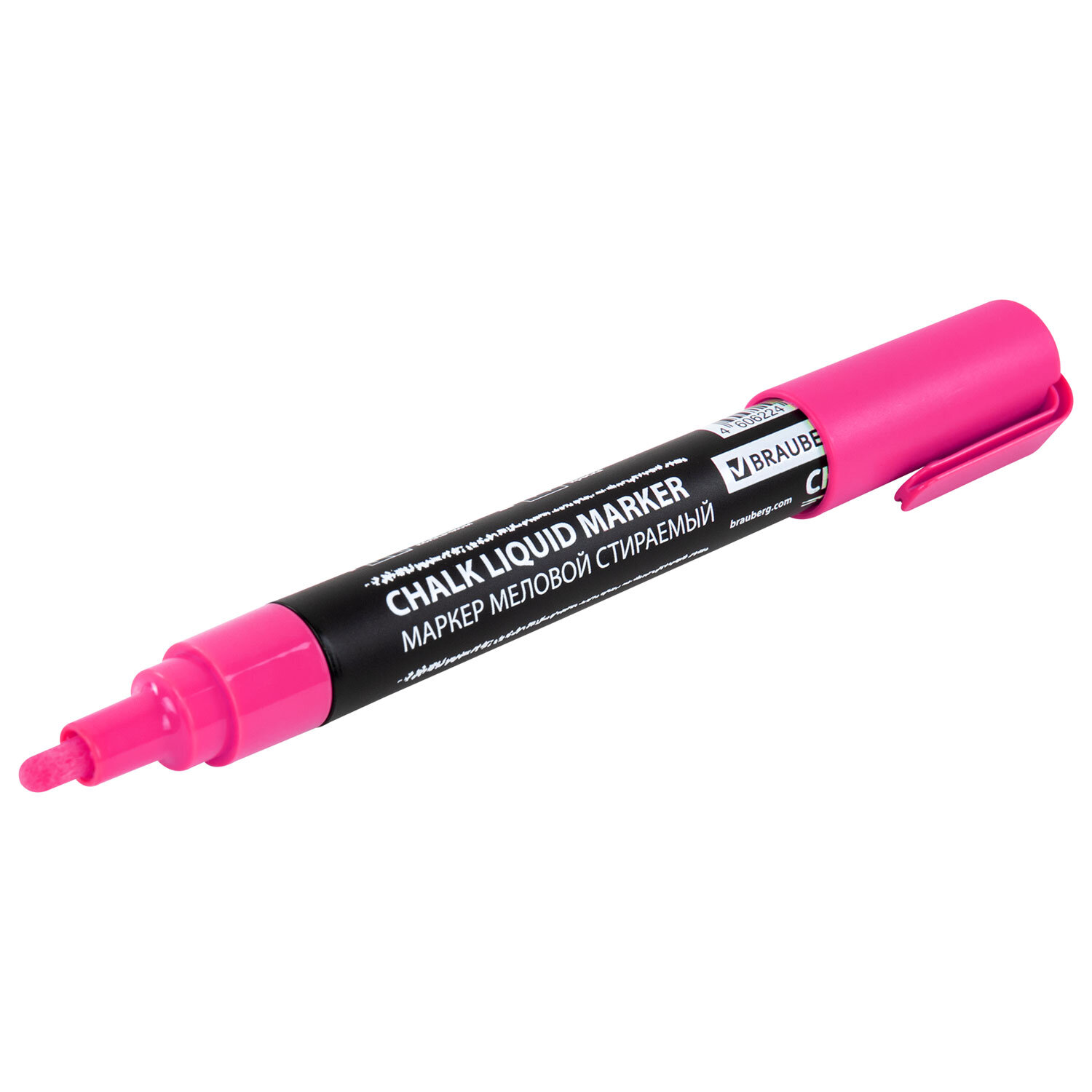 Маркер меловой CHALK LIQUID MARKER, РОЗОВЫЙ, 3 мм, стираемый, BRAUBERG «CHALK», 152586