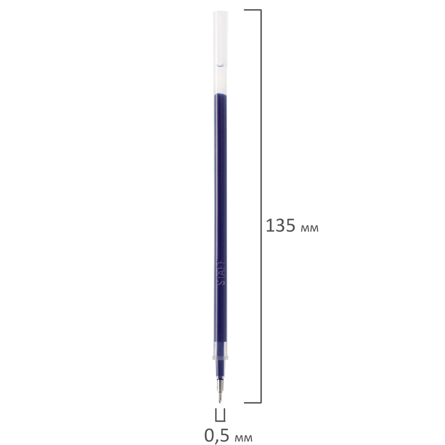 Стержни гелевые STAFF Basic, 135 мм, КОМПЛЕКТ 50 штук, СИНИЕ, игольчатый узел 0,5 мм, линия письма 0,35 мм, 170407
