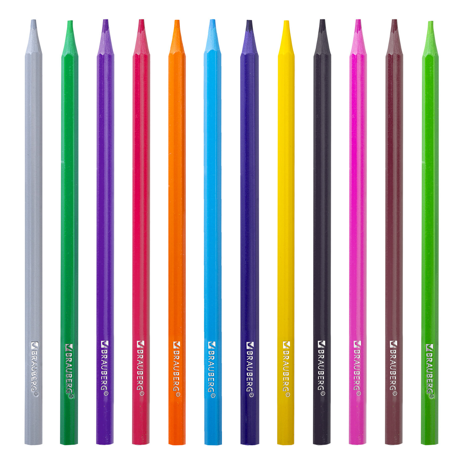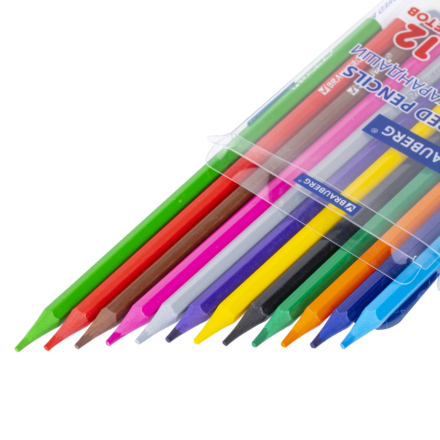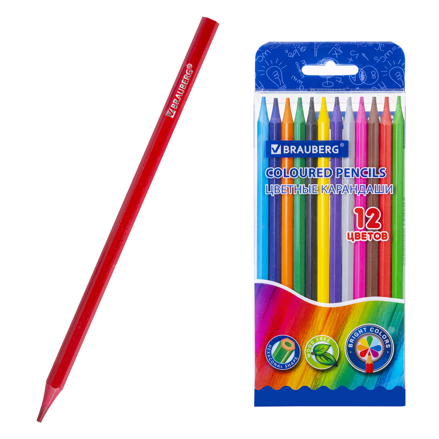 Карандаши цветные BRAUBERG, 12 цветов, цветной корпус, упаковка ПВХ-бокс, шестигранные, 182067