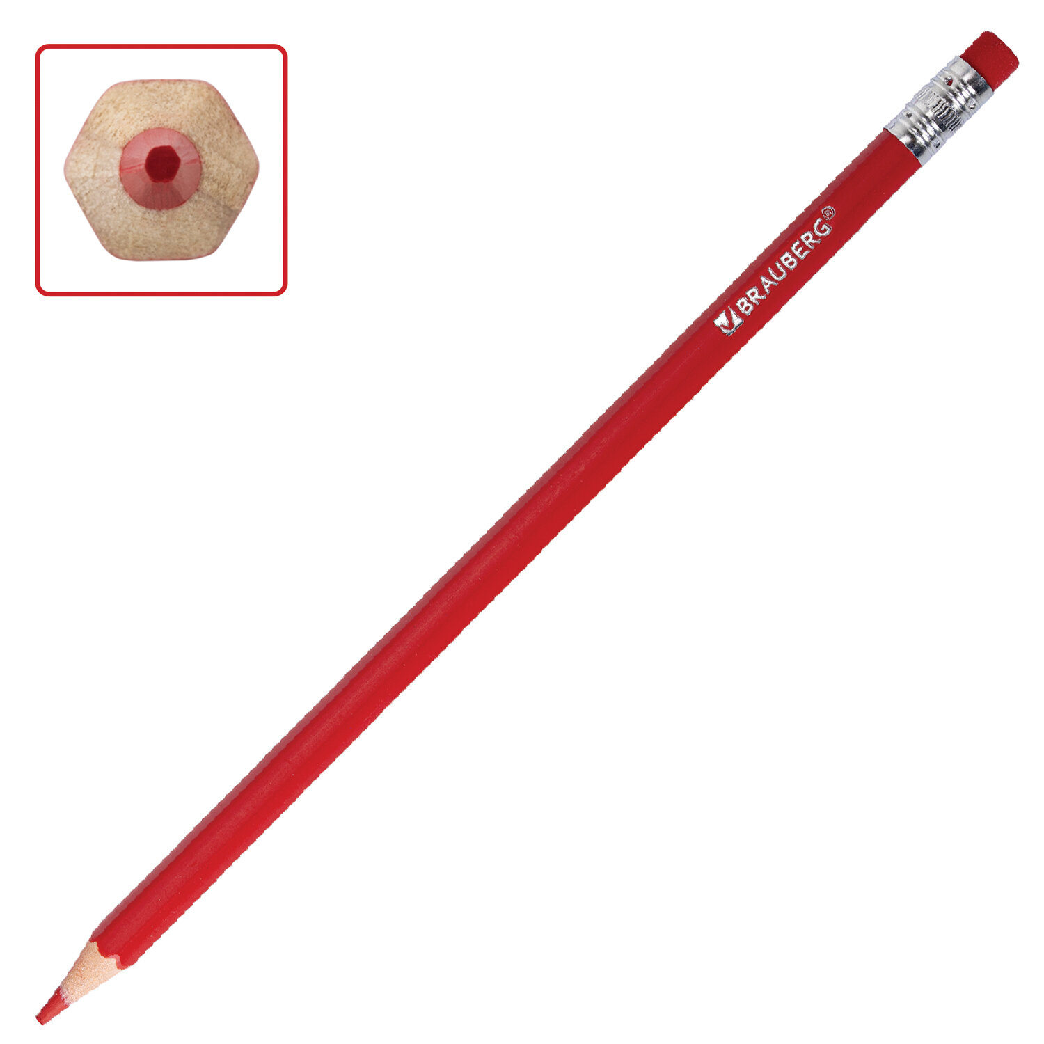Карандаши цветные стираемые с ластиком BRAUBERG, 12 цветов, шестигранные, 182070