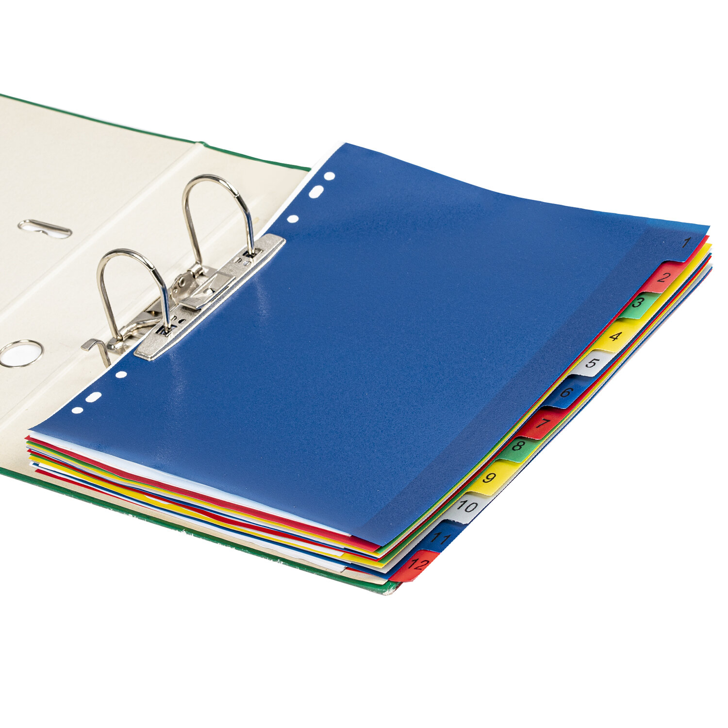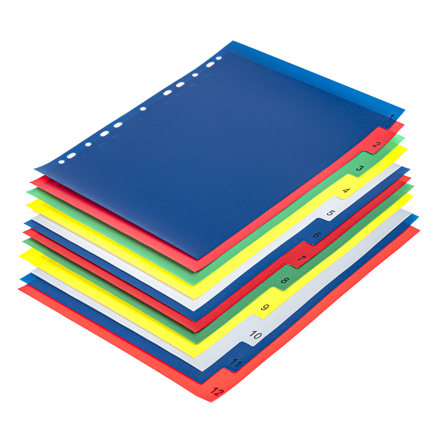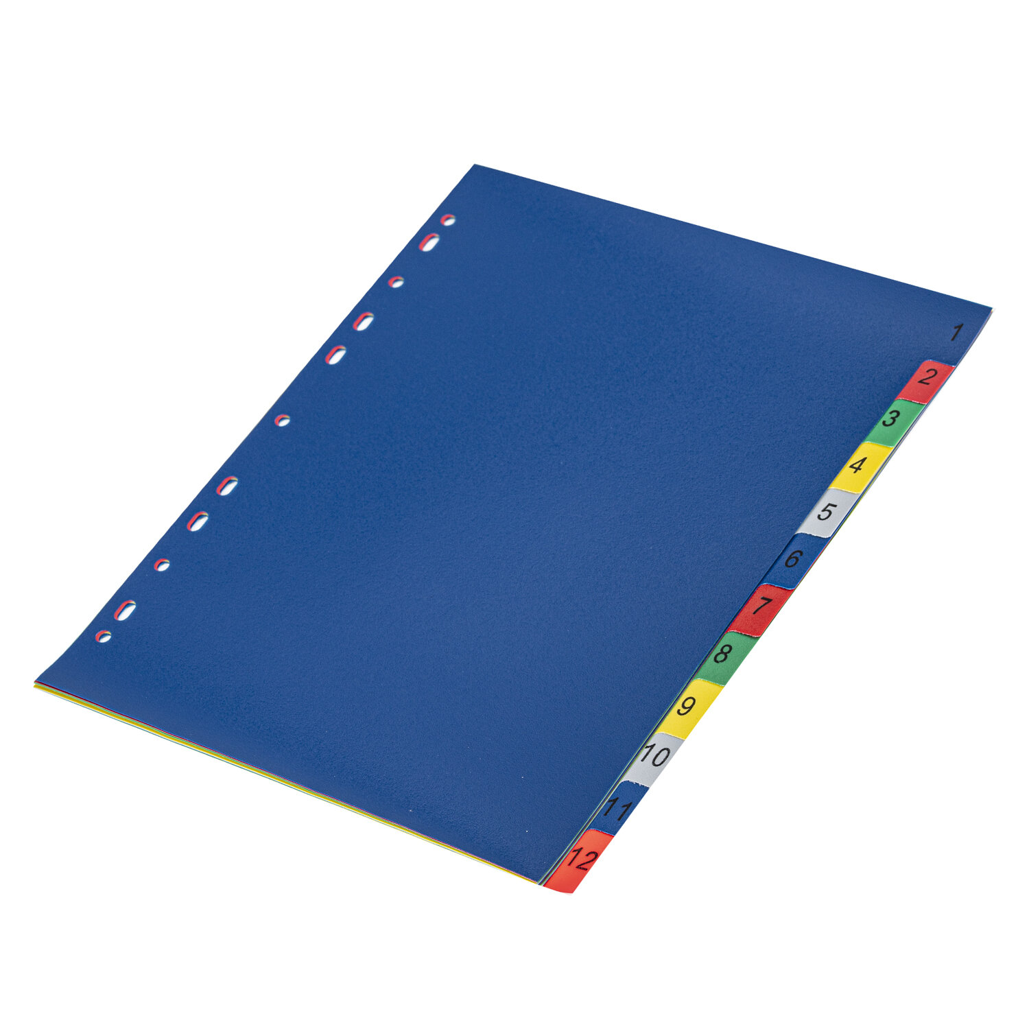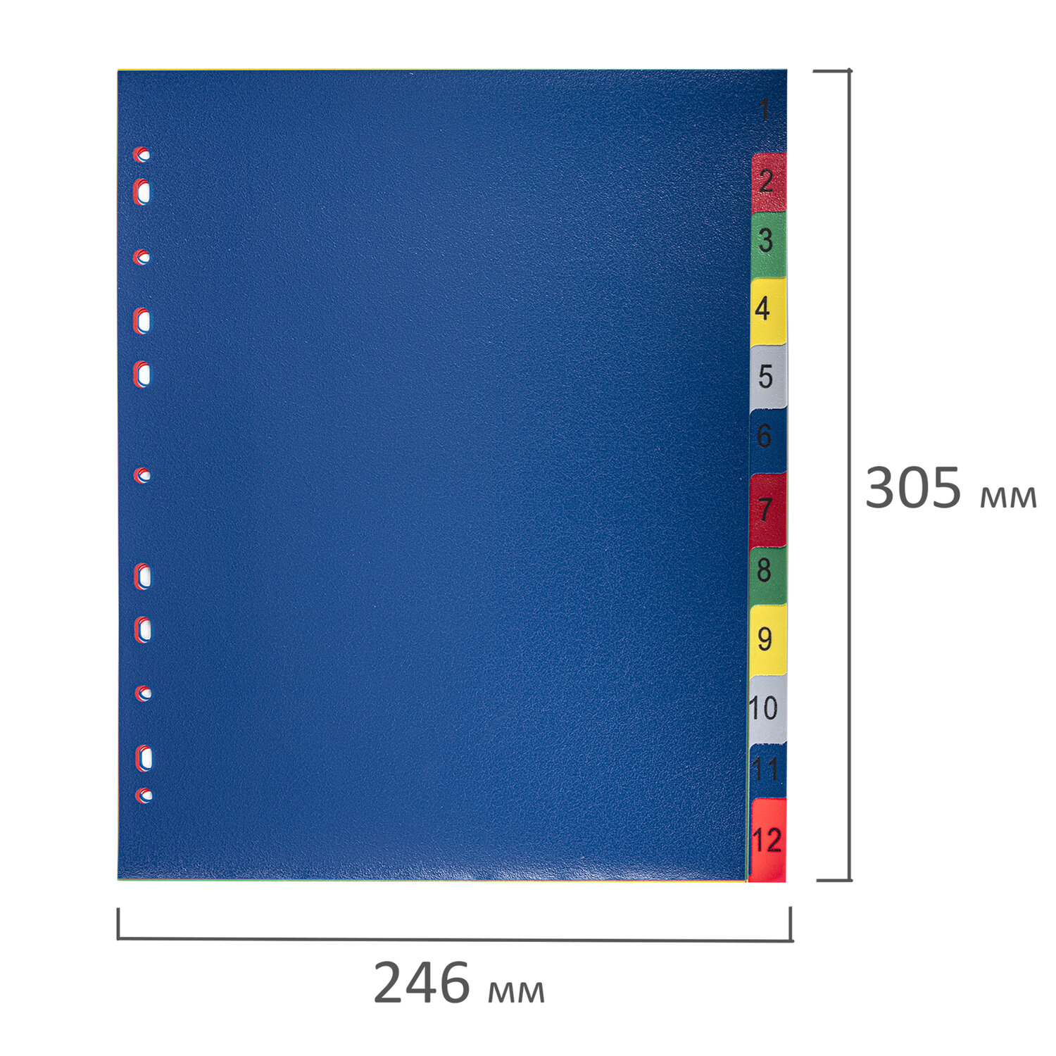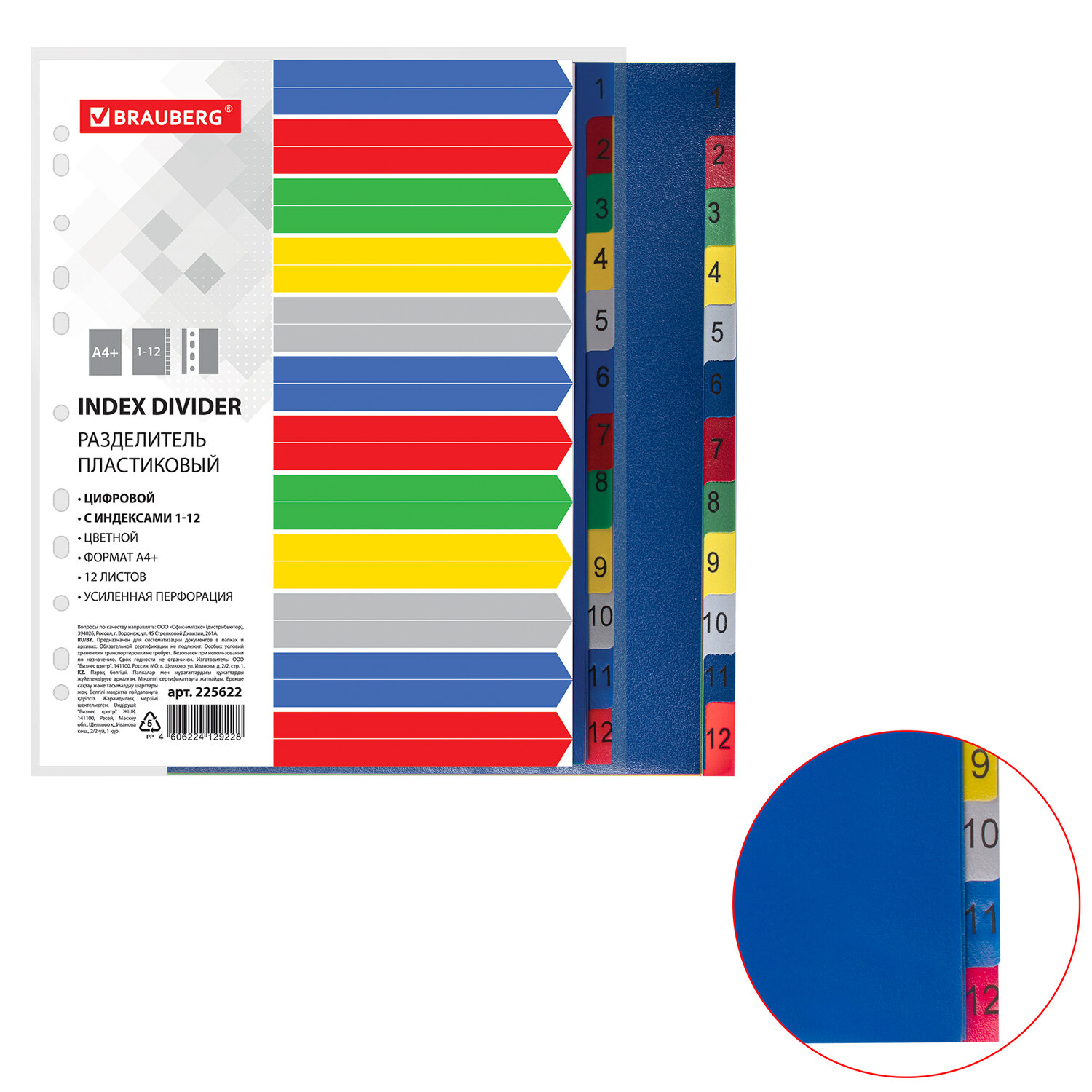 Разделитель пластиковый широкий BRAUBERG А4+, 12 листов, цифровой 1-12, оглавление, цветной, 225622