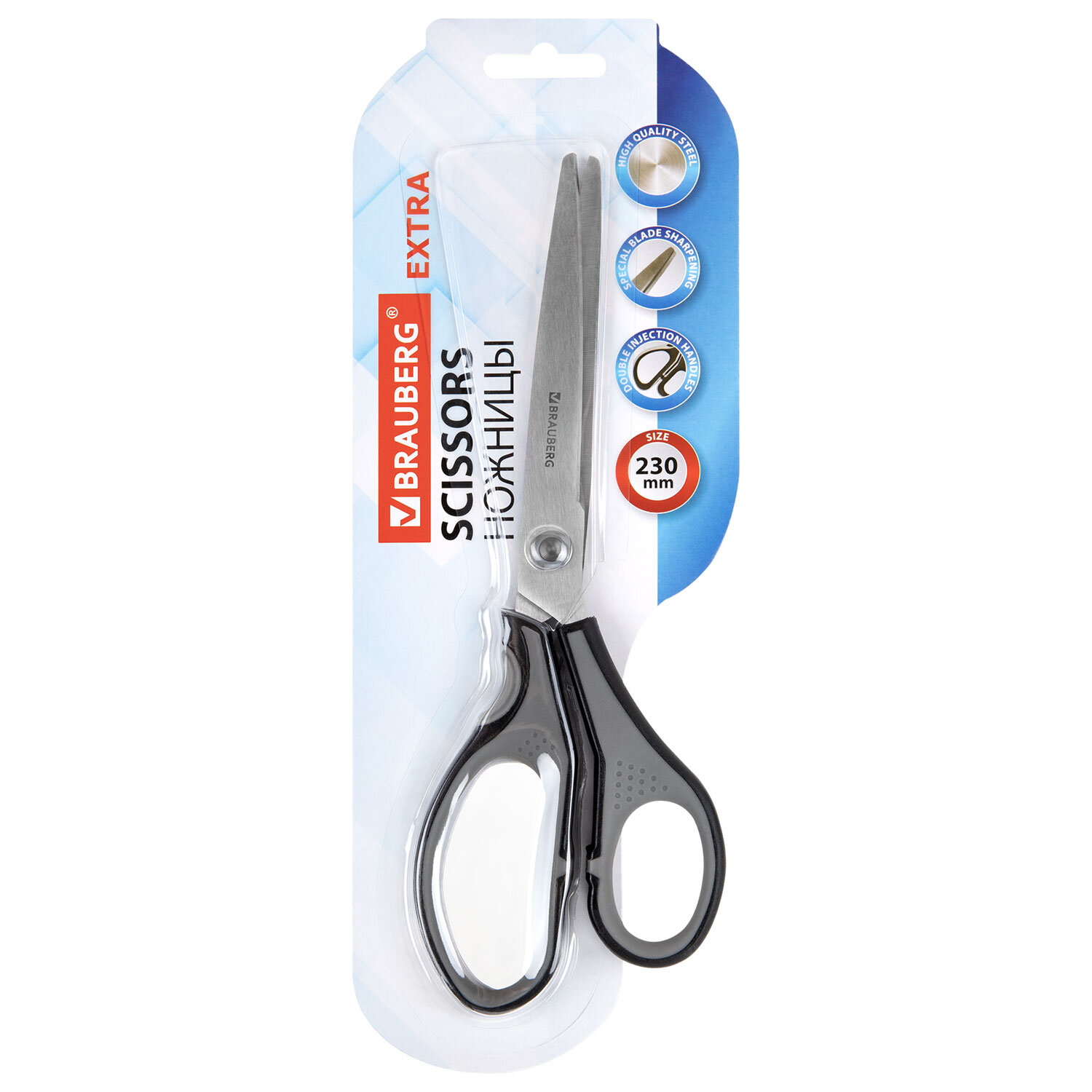 Ножницы BRAUBERG «EXTRA», 230 мм, серо-черные, 2-сторонняя заточка, эргономичные ручки, 237297
