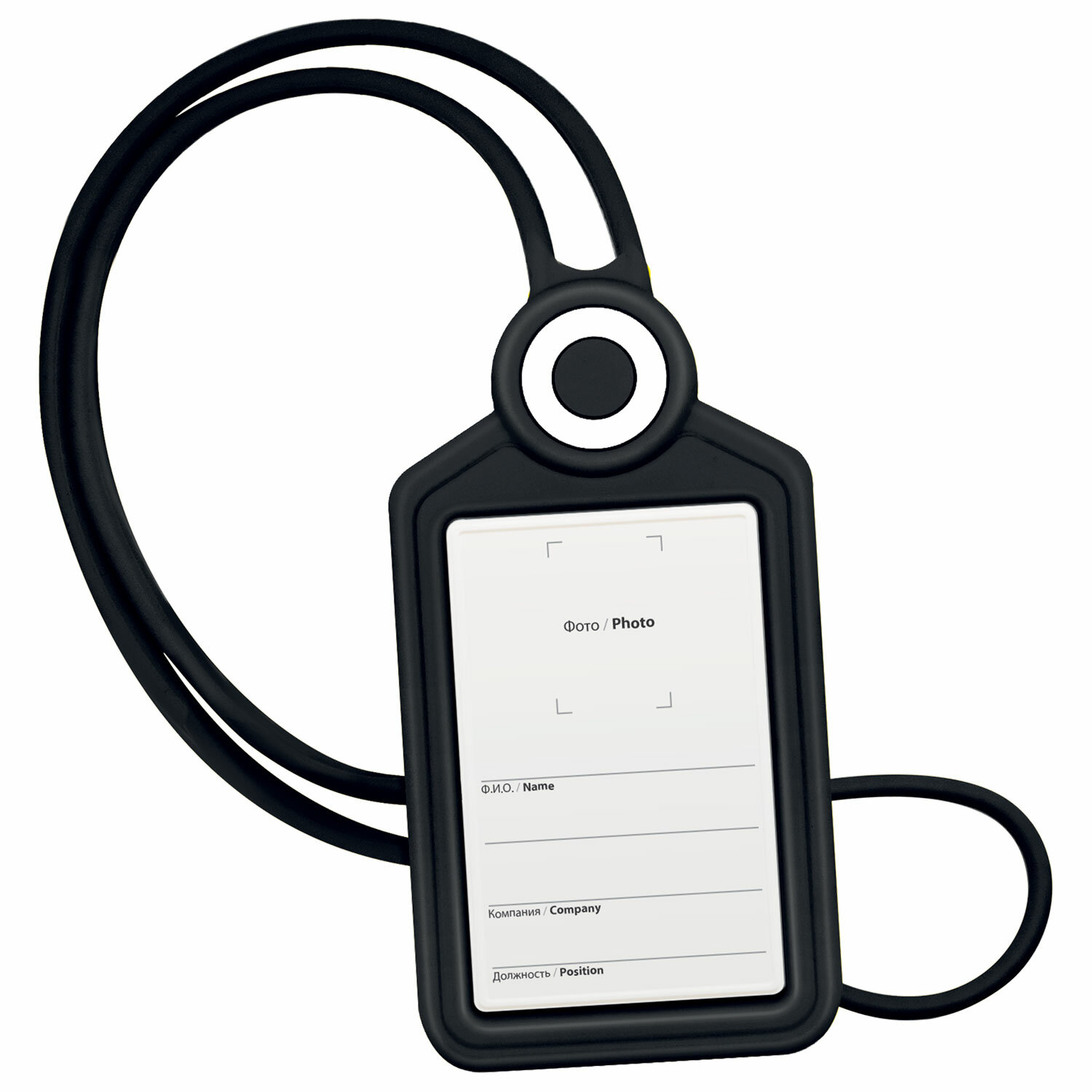 Бейдж вертикальный для пропуска и ID-карт, СИЛИКОНОВЫЙ, 85×54 мм, шнурок 42 см, черный, BRAUBERG, 238904