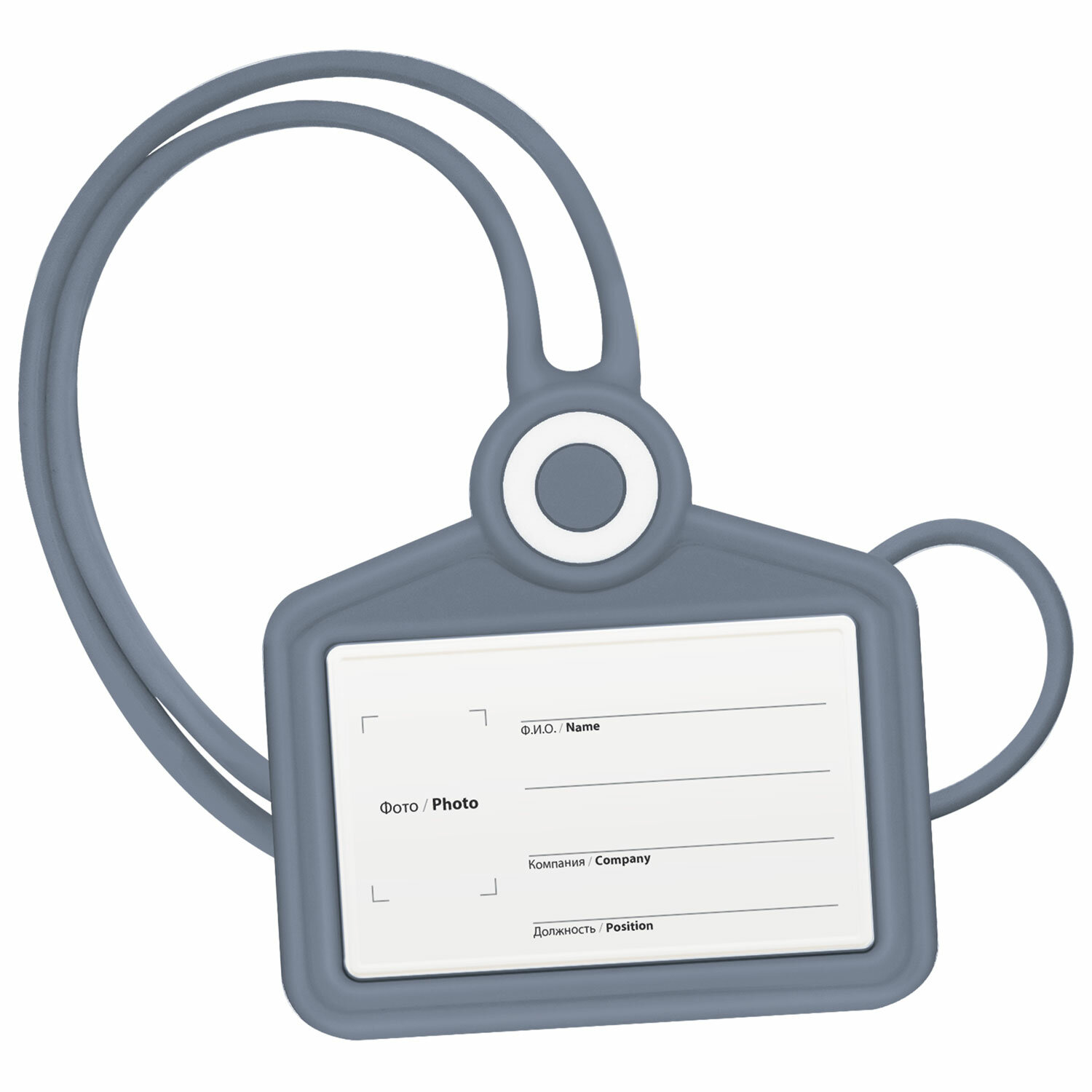Бейдж горизонтальный для пропуска и ID-карт, СИЛИКОНОВЫЙ, 54×85 мм, шнурок 42 см, серый, BRAUBERG, 238909