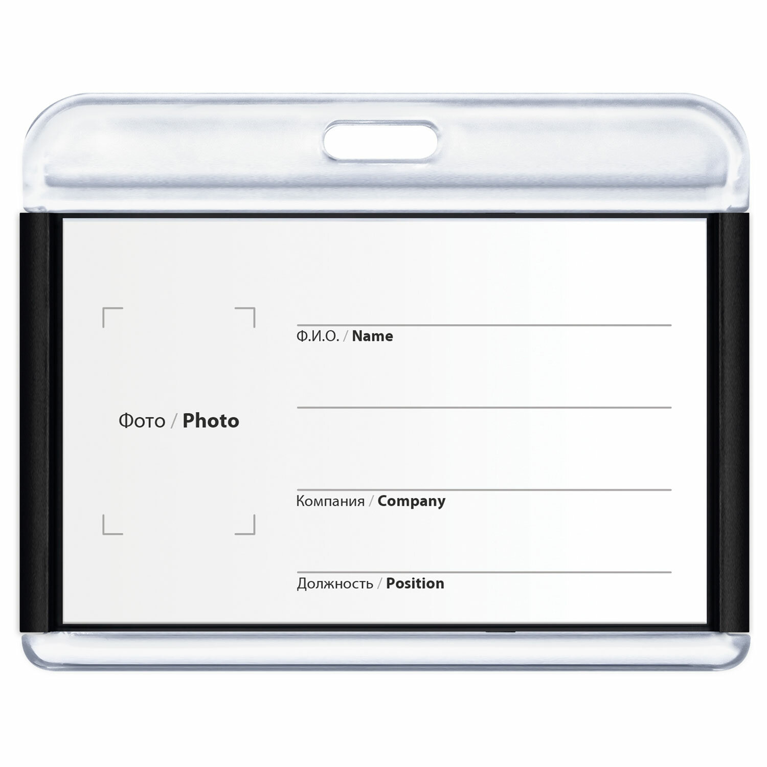 Бейдж горизонтальный для пропуска и ID-карт, 54×85 мм, черный, BRAUBERG ULTRA, 238916