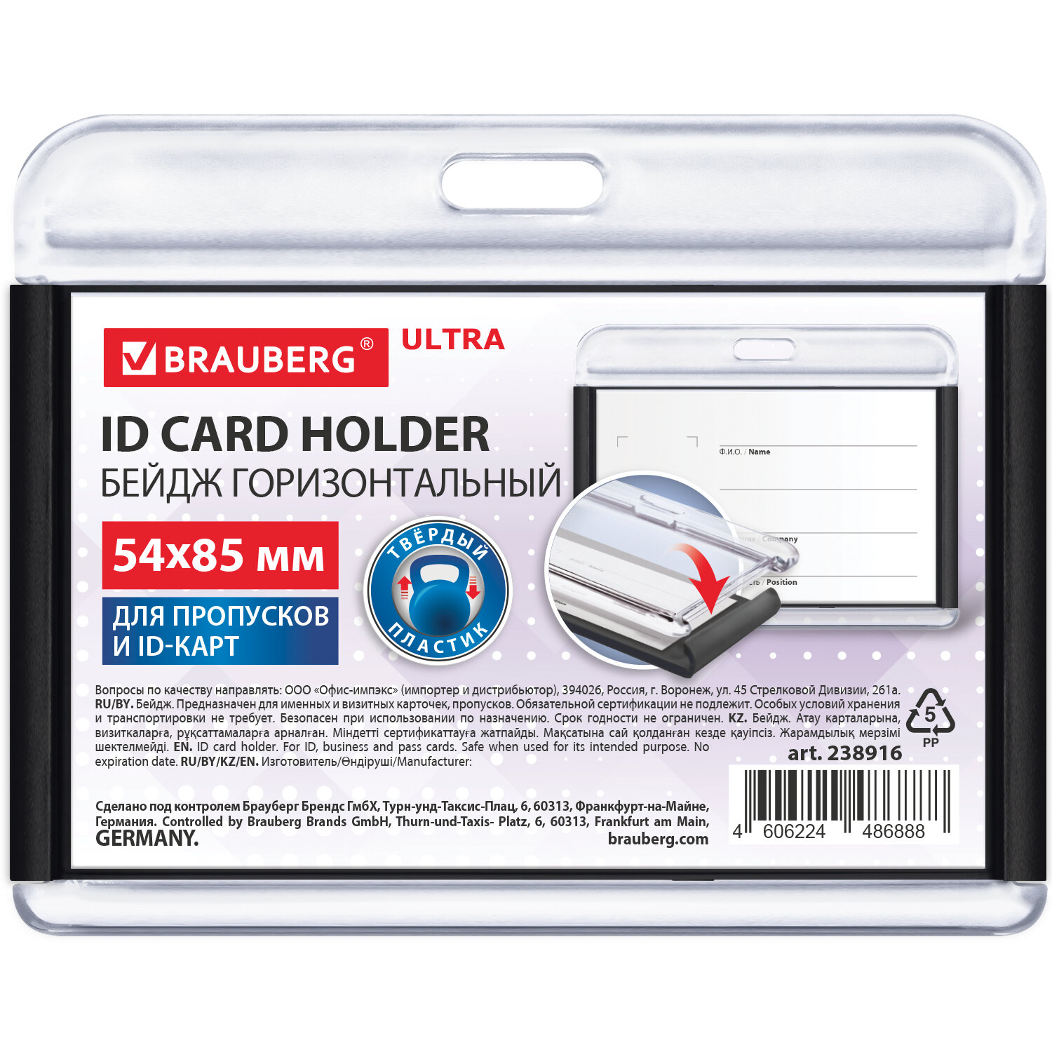 Горизонтальный бейдж BRAUBERG ULTRA для хранения пропусков и карточек сотрудников, ID-карт, проездных и банковских карт.