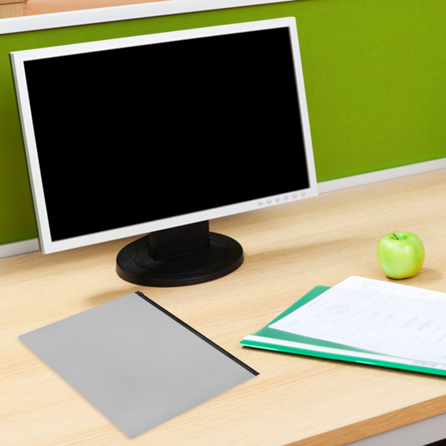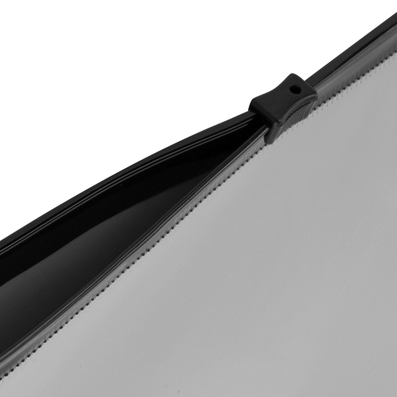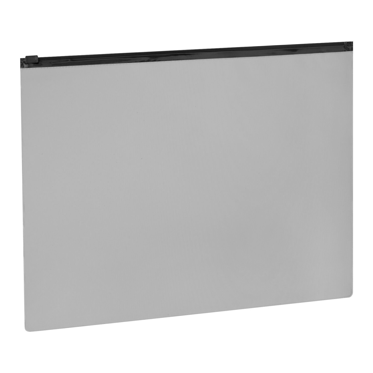 Изготовлена из непрозрачного серого пластика с фактурной поверхностью толщиной 0,23 мм. Формат – А4 (230х333 мм). Герметичная застежка-зиплок защищает документы от механических повреждений, а также от пыли и влаги. Непрозрачный материал обеспечивает надежную защиту содержимого папки от посторонних глаз. Цвет молнии – черный.