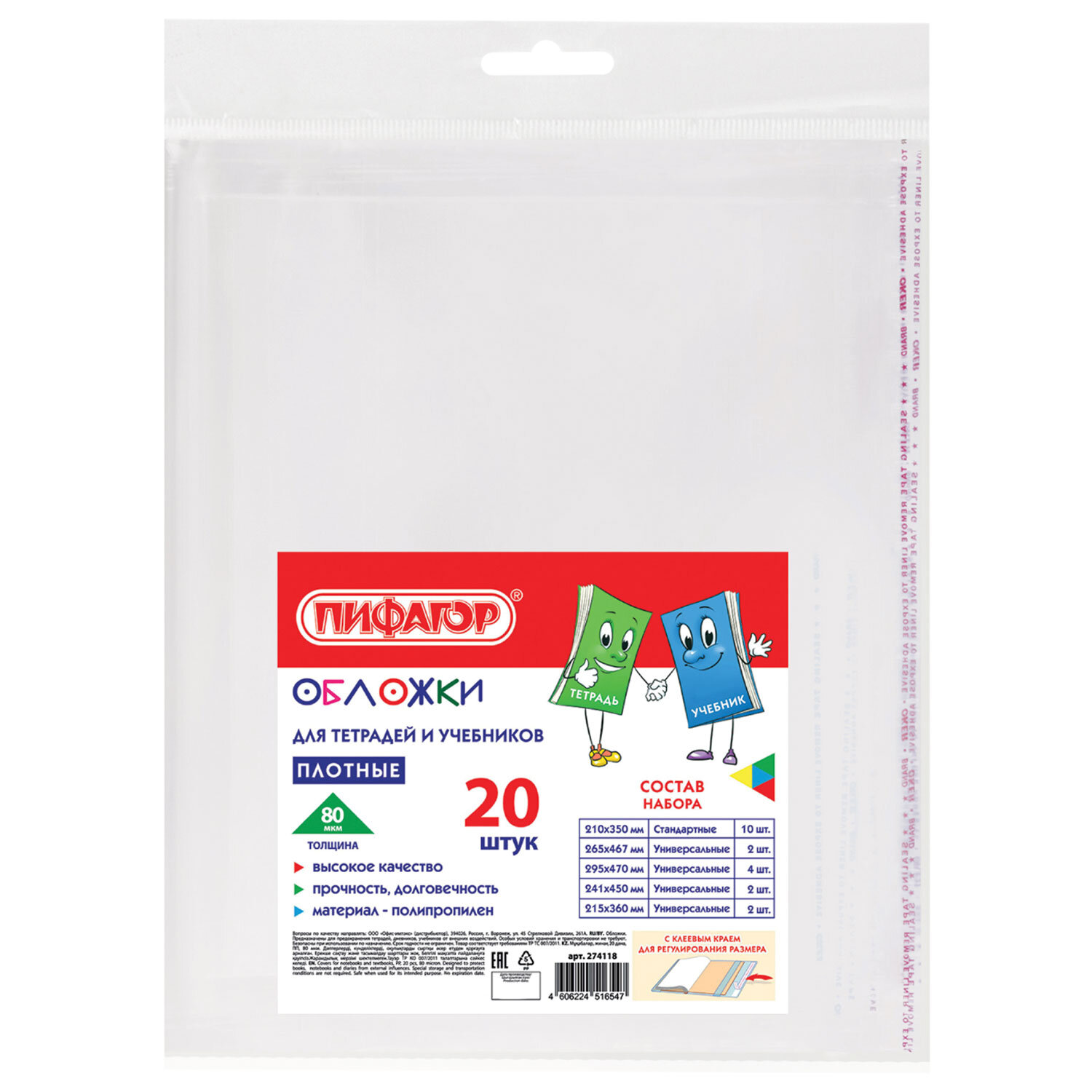 Прозрачные плотные обложки ПИФАГОР для тетрадей и учебников изготовлены из полипропилена (ПП) толщиной 80 мкм. Благодаря КЛЕЙКОМУ КРАЮ обложка легко регулируется по ширине.