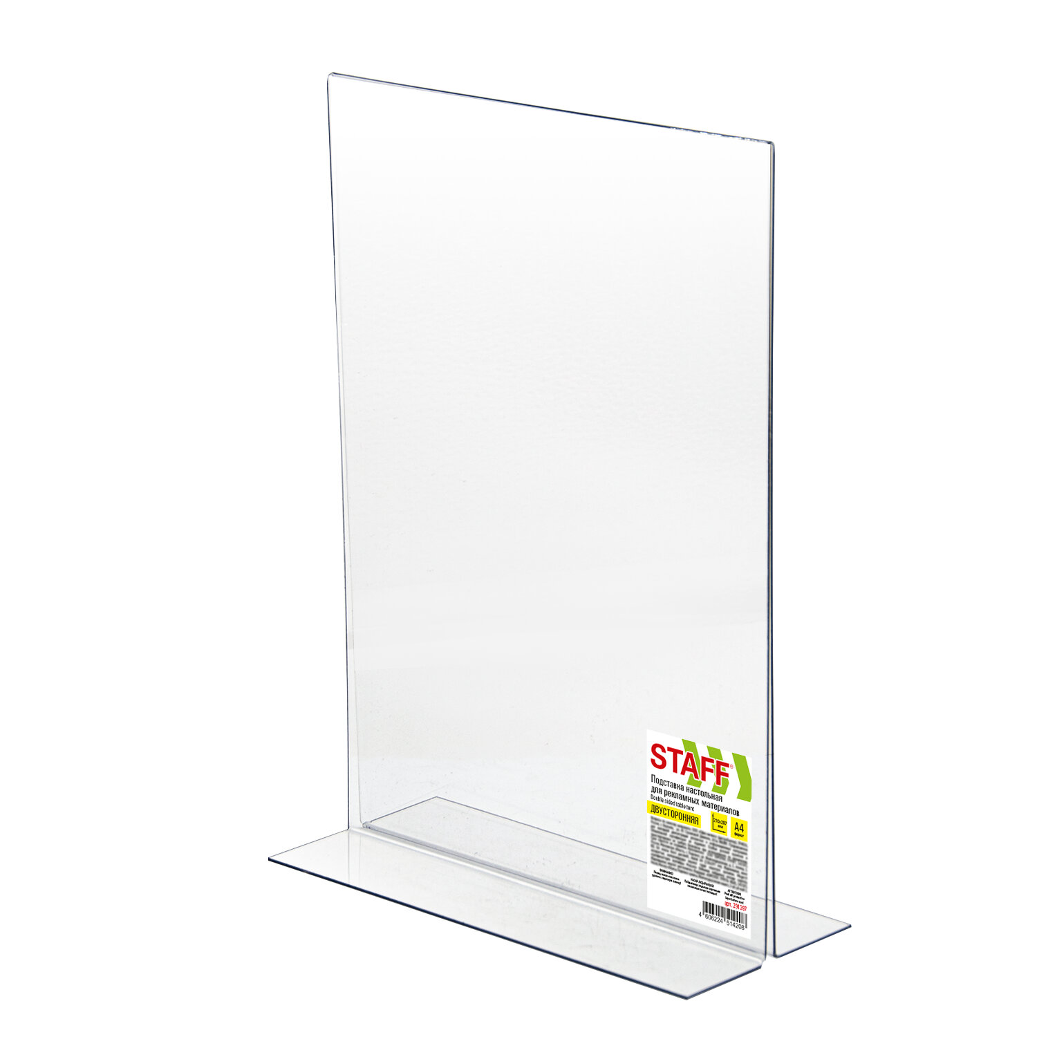 Двусторонняя вертикальная настольная подставка STAFF подходит для размещения меню, рекламных материалов формата А4.