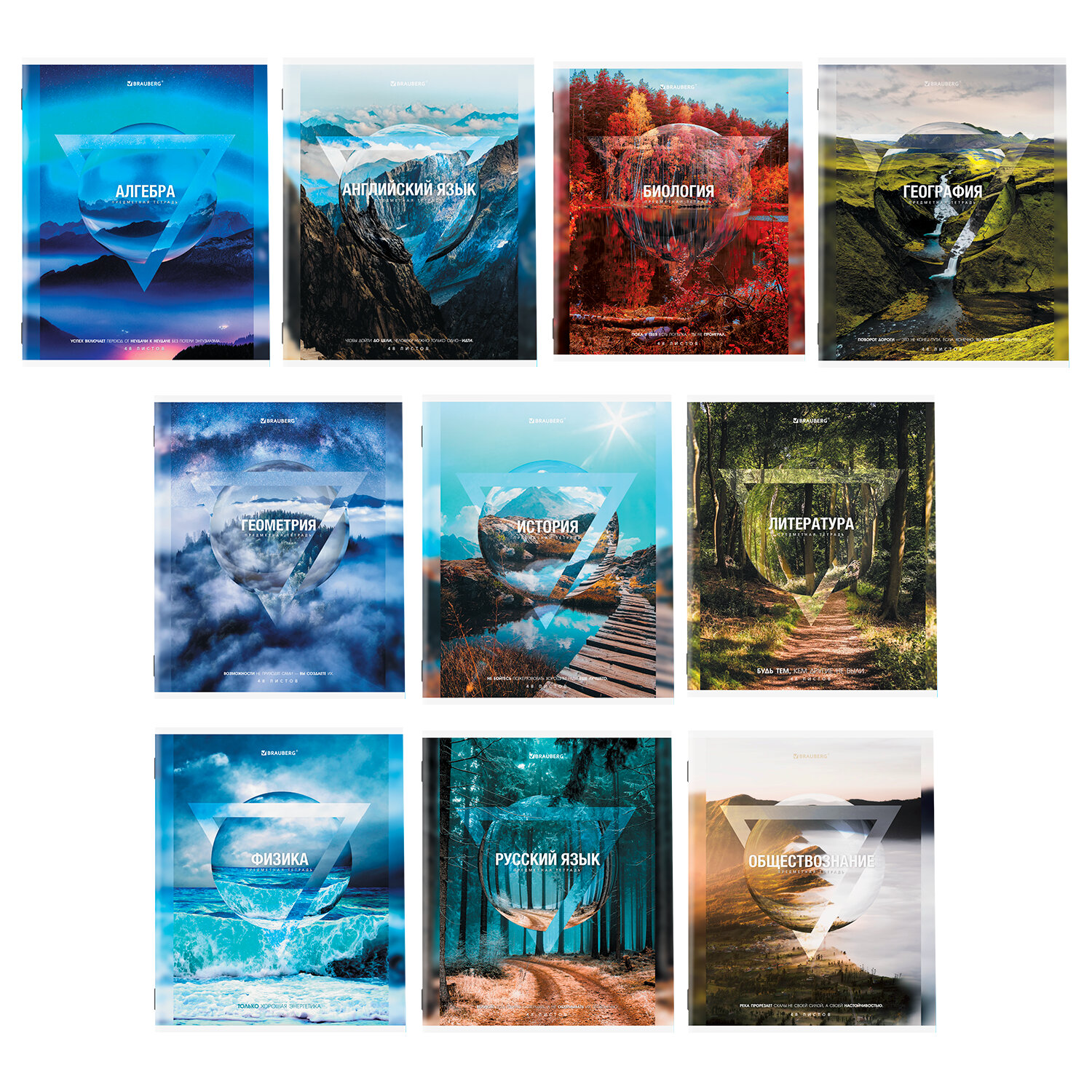 Тетради предметные, КОМПЛЕКТ 10 ПРЕДМЕТОВ, 48 л., обложка картон, BRAUBERG, «ПРИРОДА», 404839