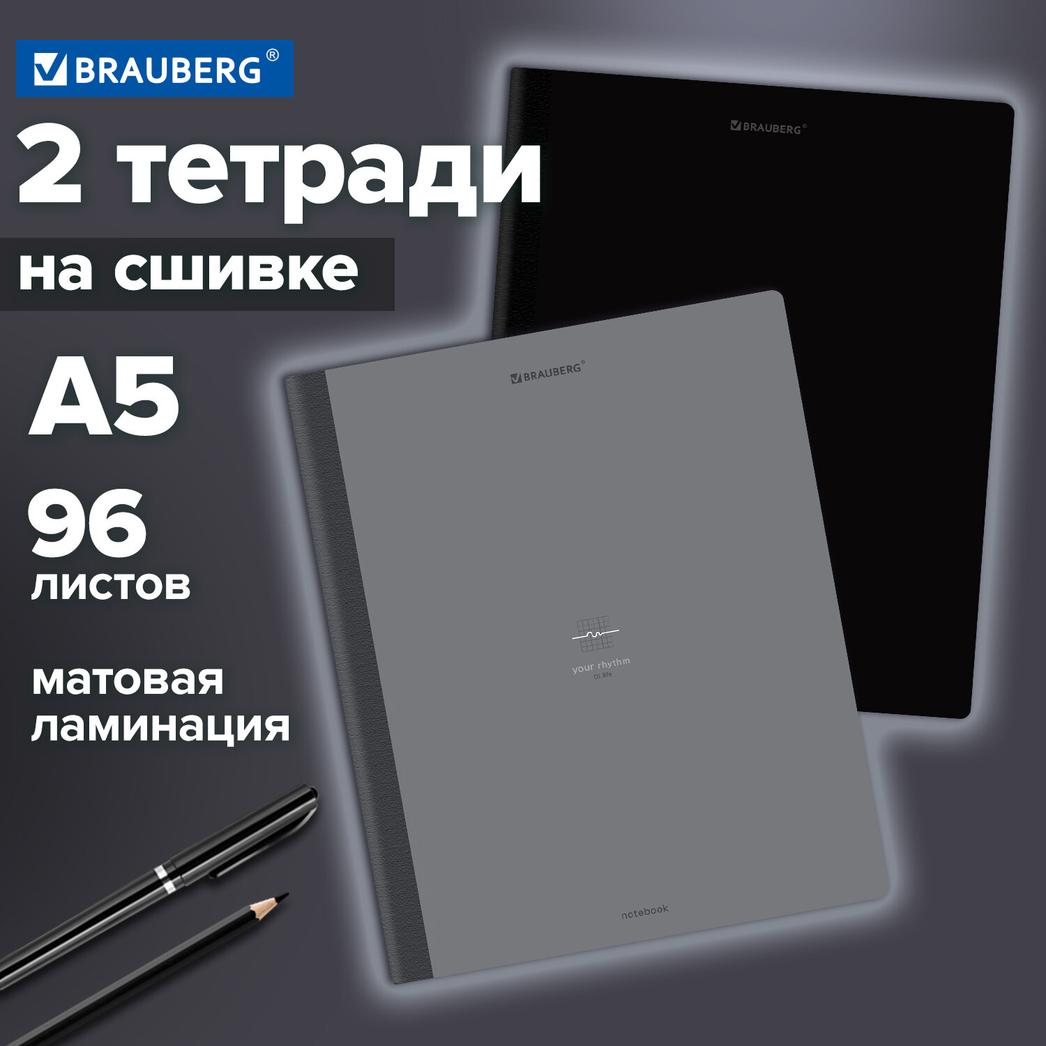 Тетради ДЭК А5 96 л. КОМПЛЕКТ 2 шт., BRAUBERG, на сшивке с корешком, клетка, «Ритм», 405304