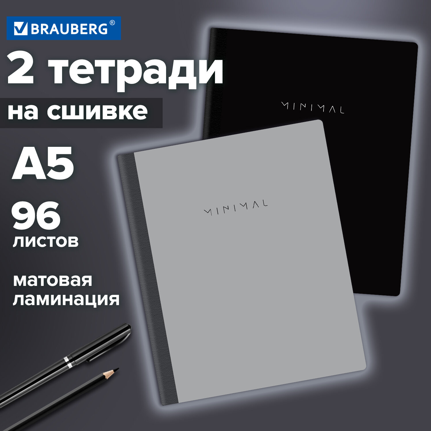 Тетради ДЭК А5 96 л. КОМПЛЕКТ 2 шт., BRAUBERG, на сшивке с корешком, клетка, «Minimal Classic», 405305