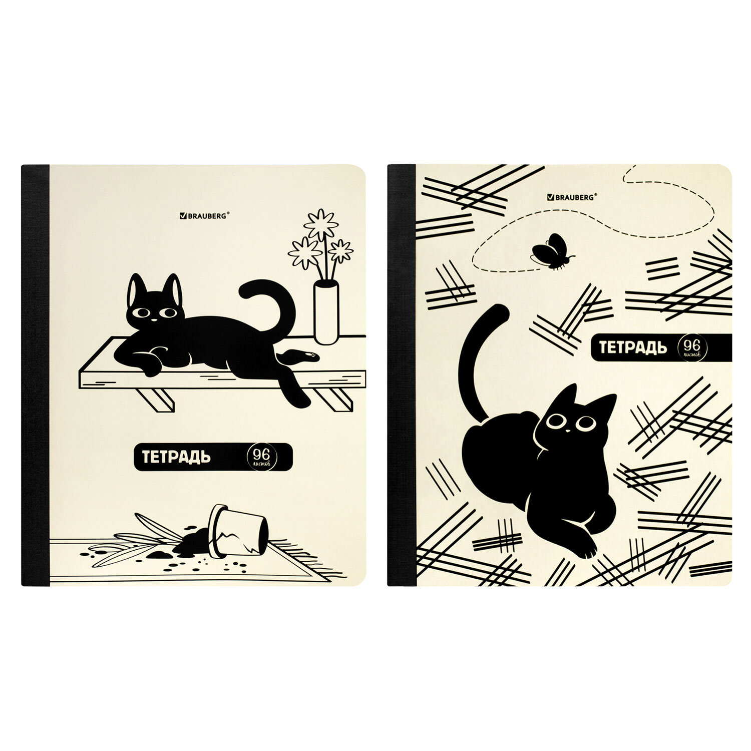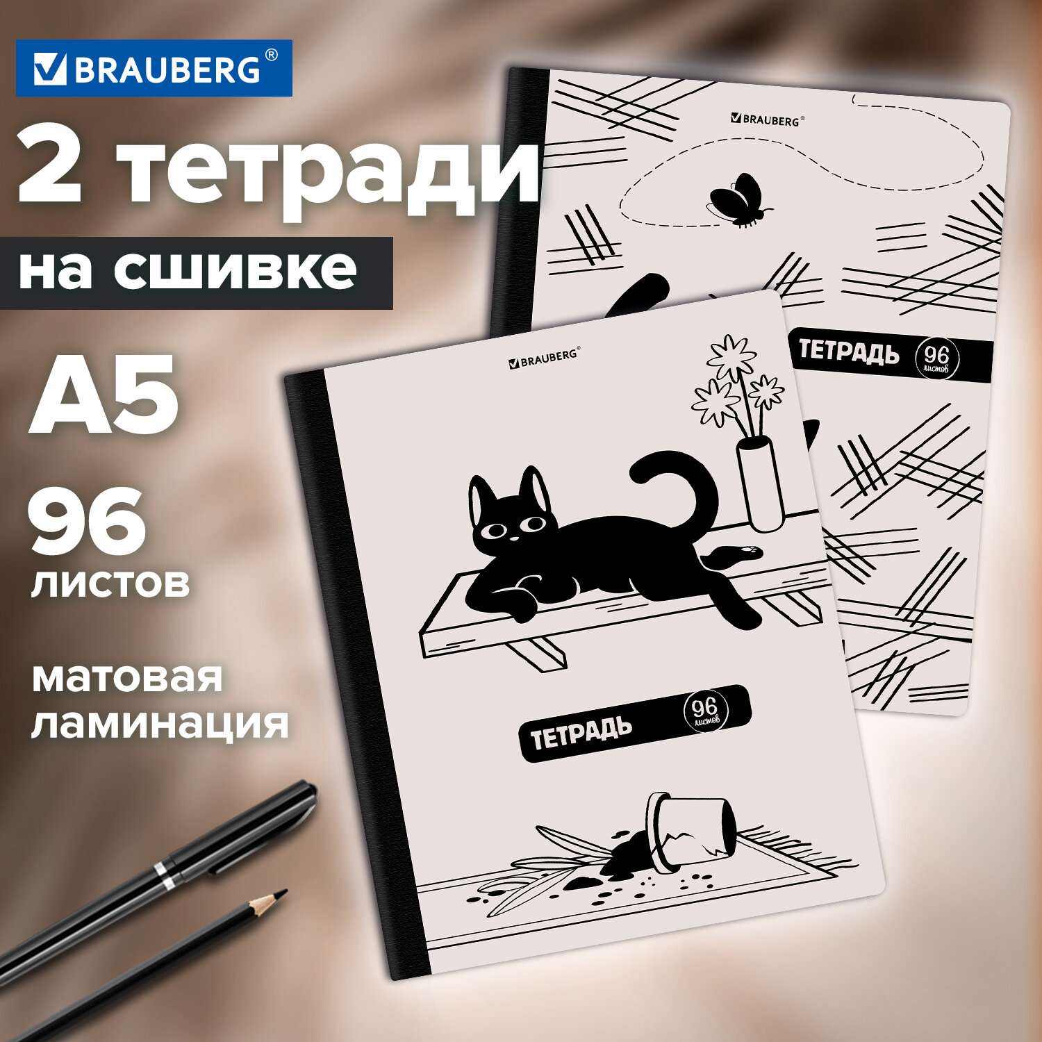 Тетради ДЭК А5 96 л. КОМПЛЕКТ 2 шт., BRAUBERG, на сшивке с корешком, клетка, «Кот-Непоседа», 405309