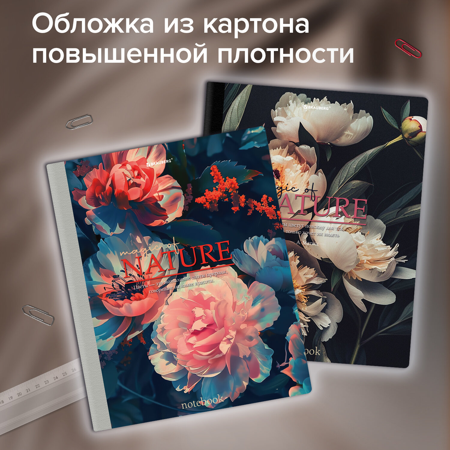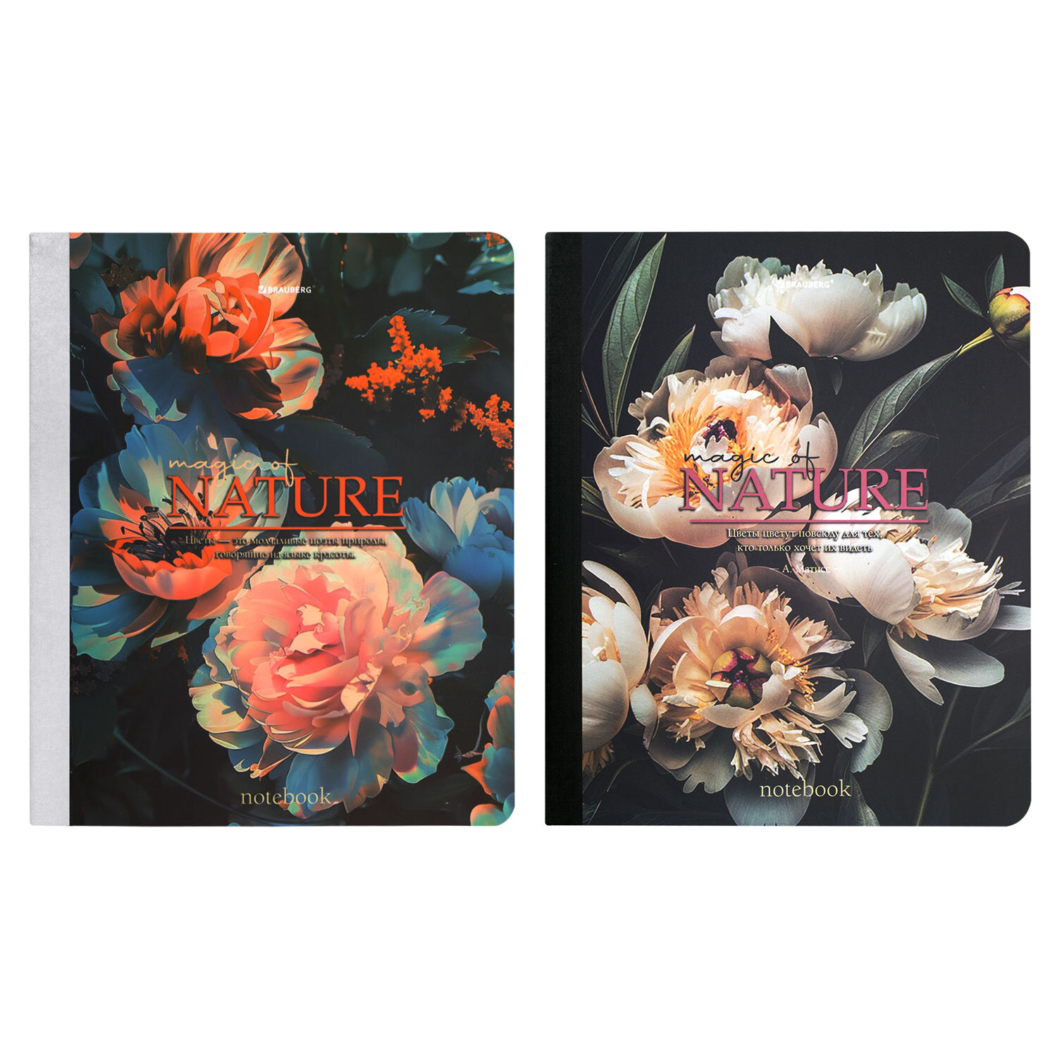 Тетради ДЭК А5 96 л. КОМПЛЕКТ 2 шт., BRAUBERG, на сшивке с корешком, клетка, «Flowers», 405311