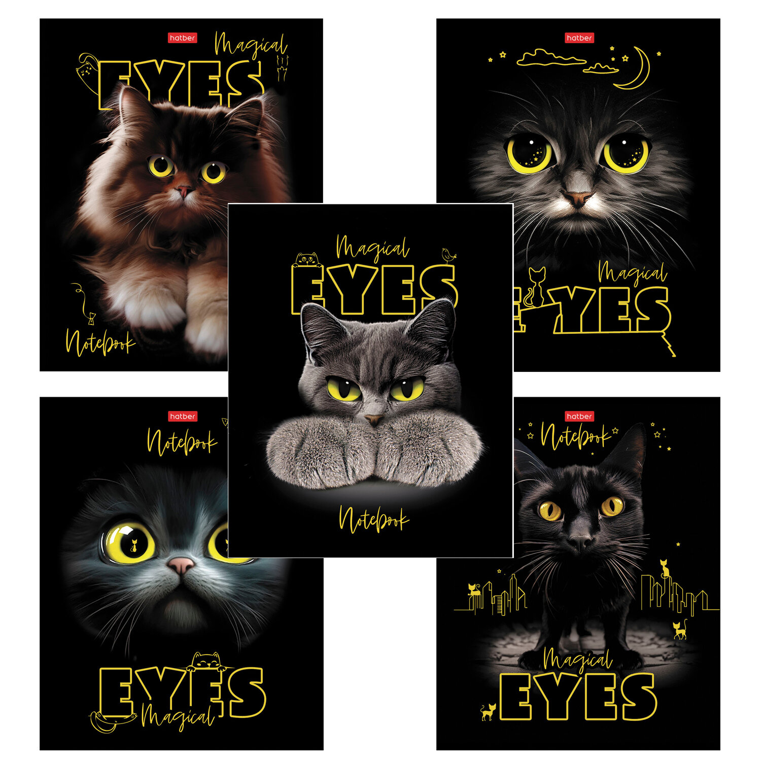 Тетрадь А5 48 л., HATBER скоба, клетка, матовая ламинация, 3D-лак, «Волшебные глаза» (микс), 088313