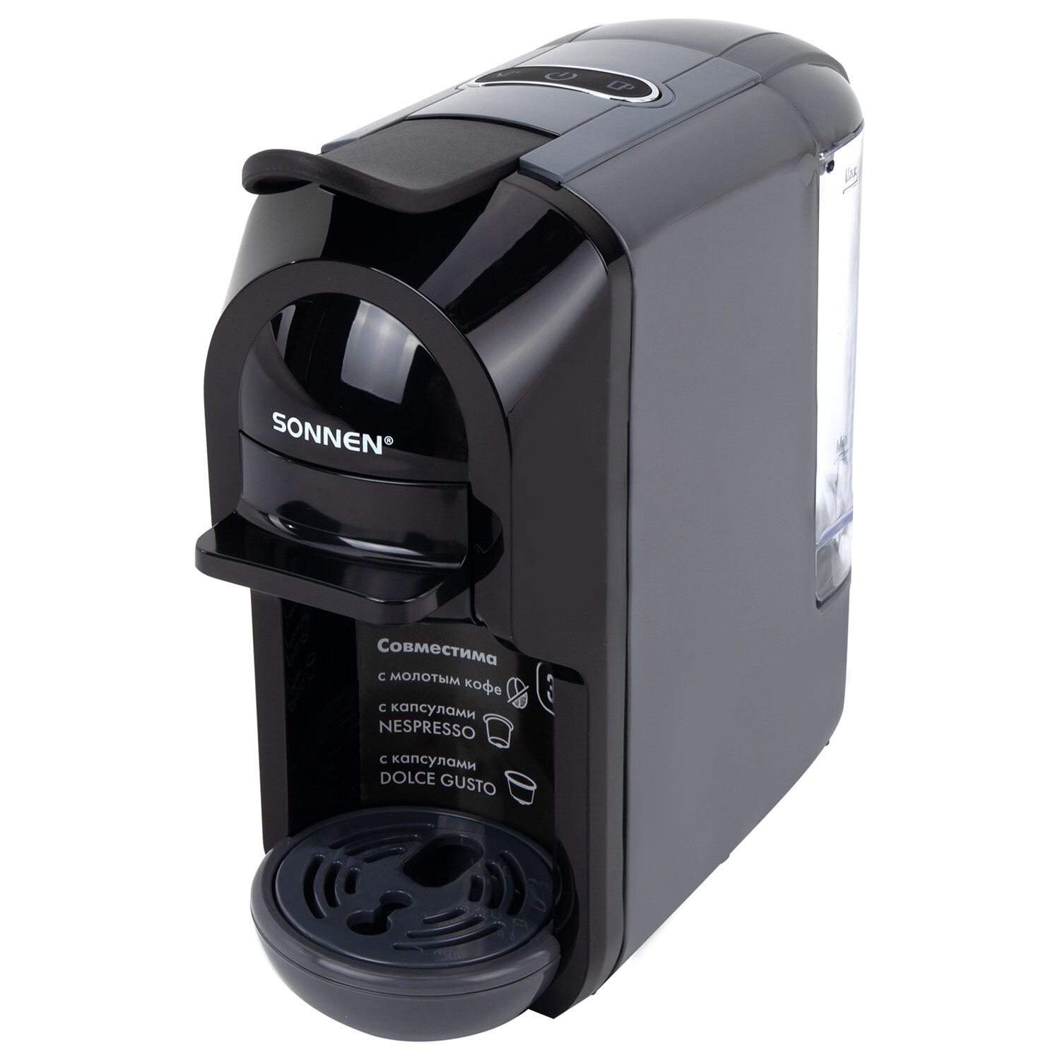Кофемашина капсульная 3 в 1 для молотого кофе и капсул DOLCE GUSTO и NESPRESSO, SONNEN CM510G, 1450 Вт, 0,6 л, графит, 457339