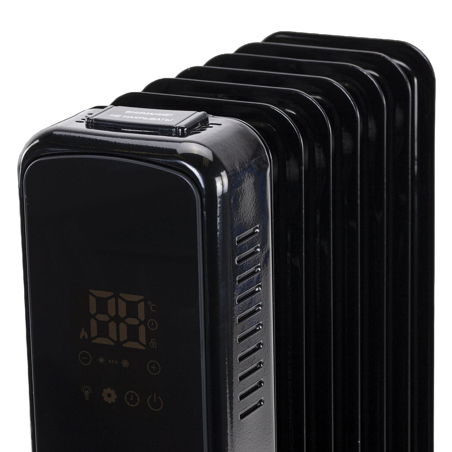 Обогреватель масляный BRASSON (БРАССОН) BOR-9 TOUCH, 9 секций, 2000 Вт, 3 режима, сенсор, пульт ДУ, черный, 457778