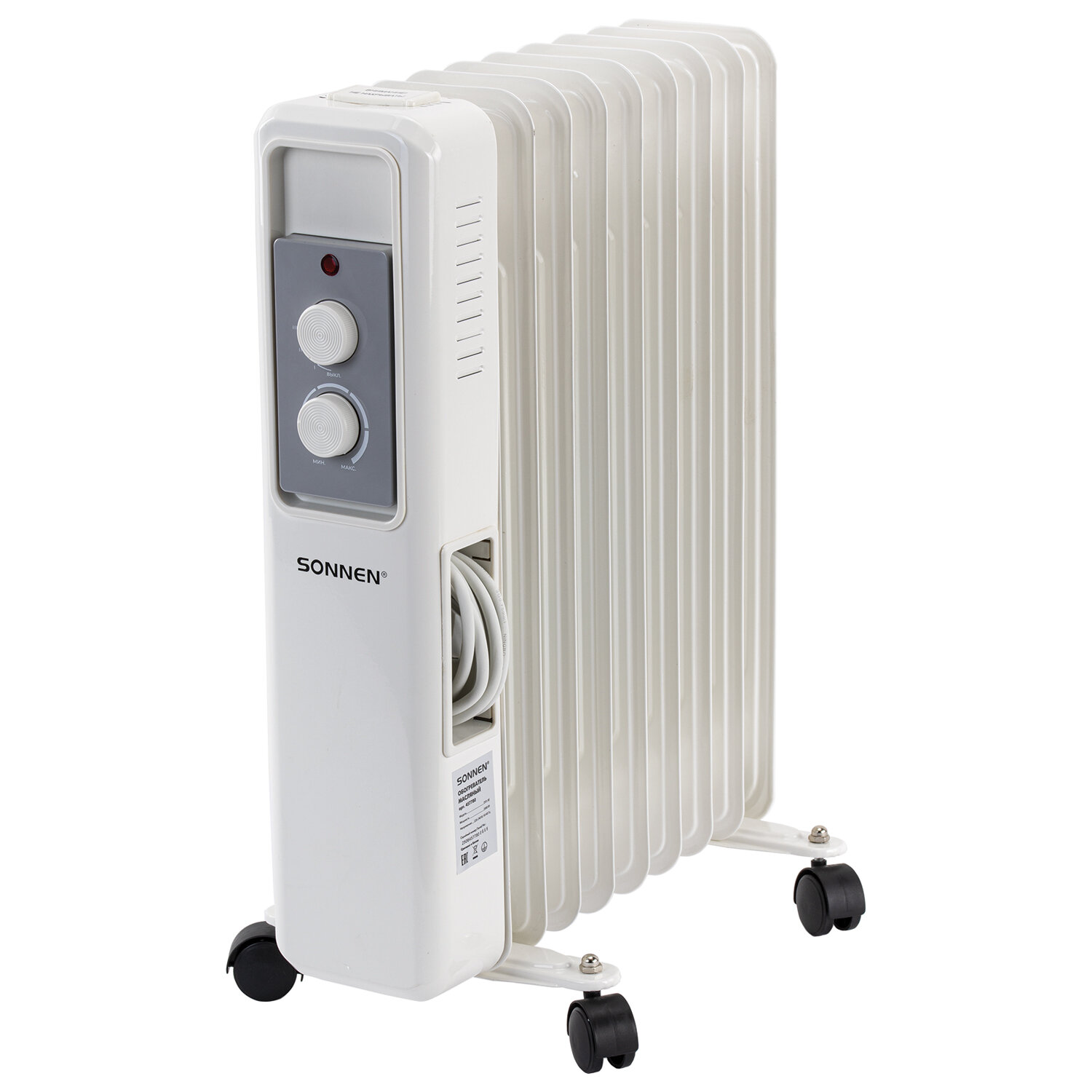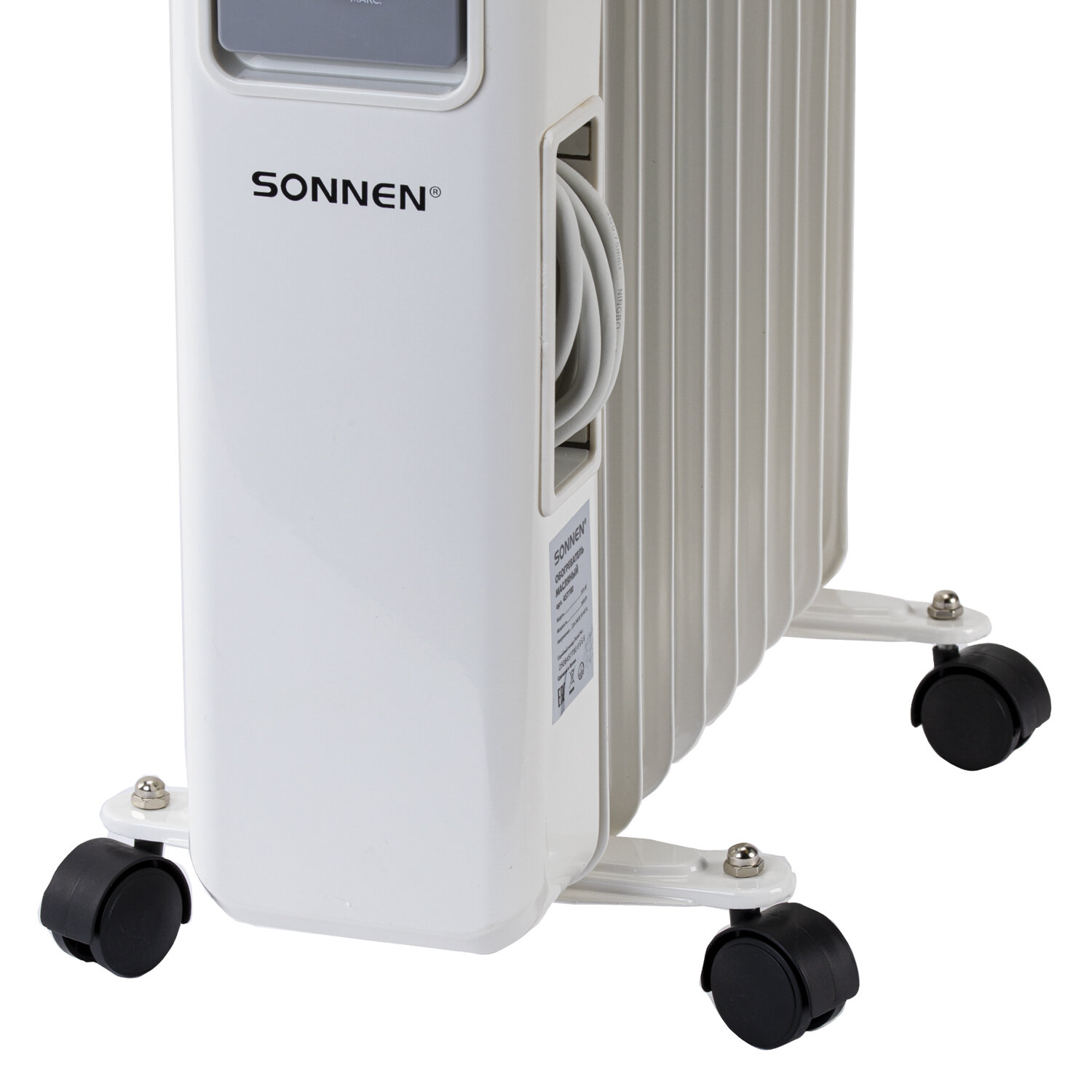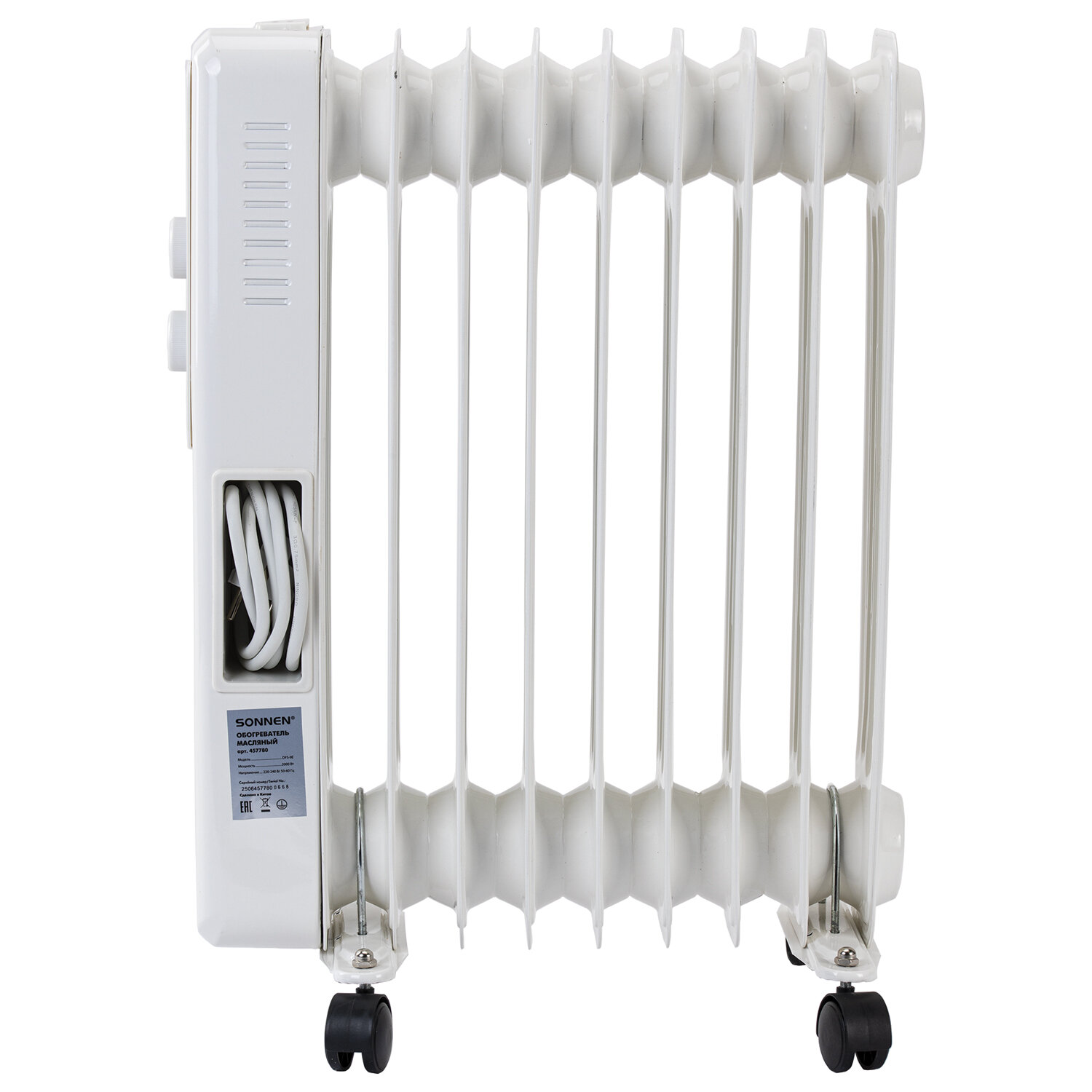 Обогреватель масляный SONNEN DFS-9E, 9 секций, 2000 Вт, 3 режима, механическое управление, белый, 457780