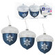 3 декоративных украшения в форме жёлудя размером 9x8 см тёмно-синего и серебристого цветов с глянцевым эффектом и белым рисунком; нитки из полиэстера длиной 30 см для подвешивания шаров золотистого цвета (3 шт.).