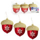 3 декоративных украшения в форме жёлудя размером 9x8 см красного и золотистого цветов с глянцевым эффектом и белым рисунком; нитки из полиэстера длиной 30 см для подвешивания шаров золотистого цвета (3 шт.).