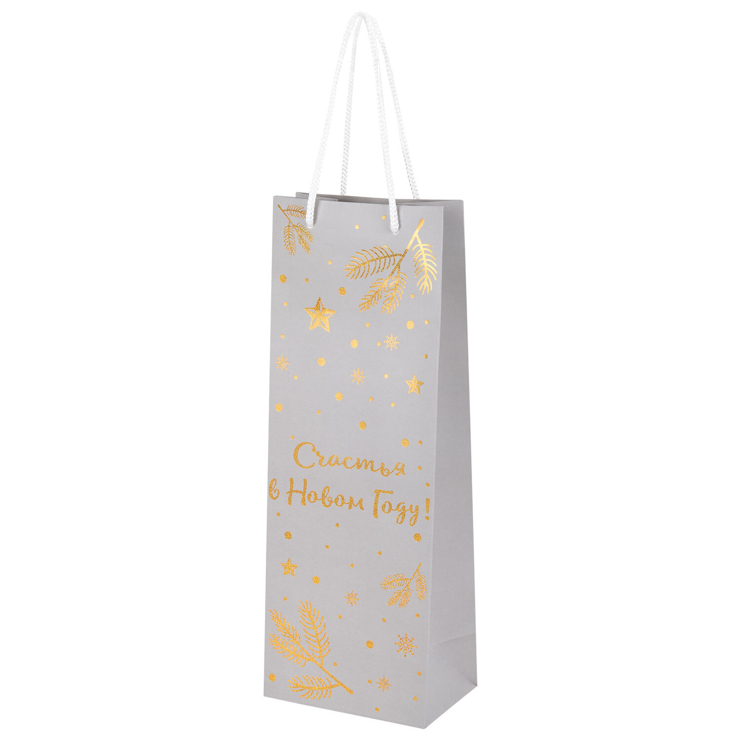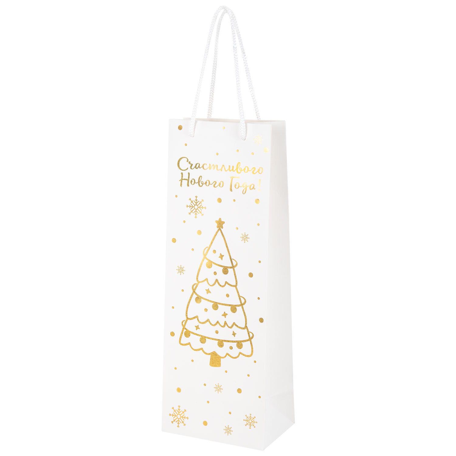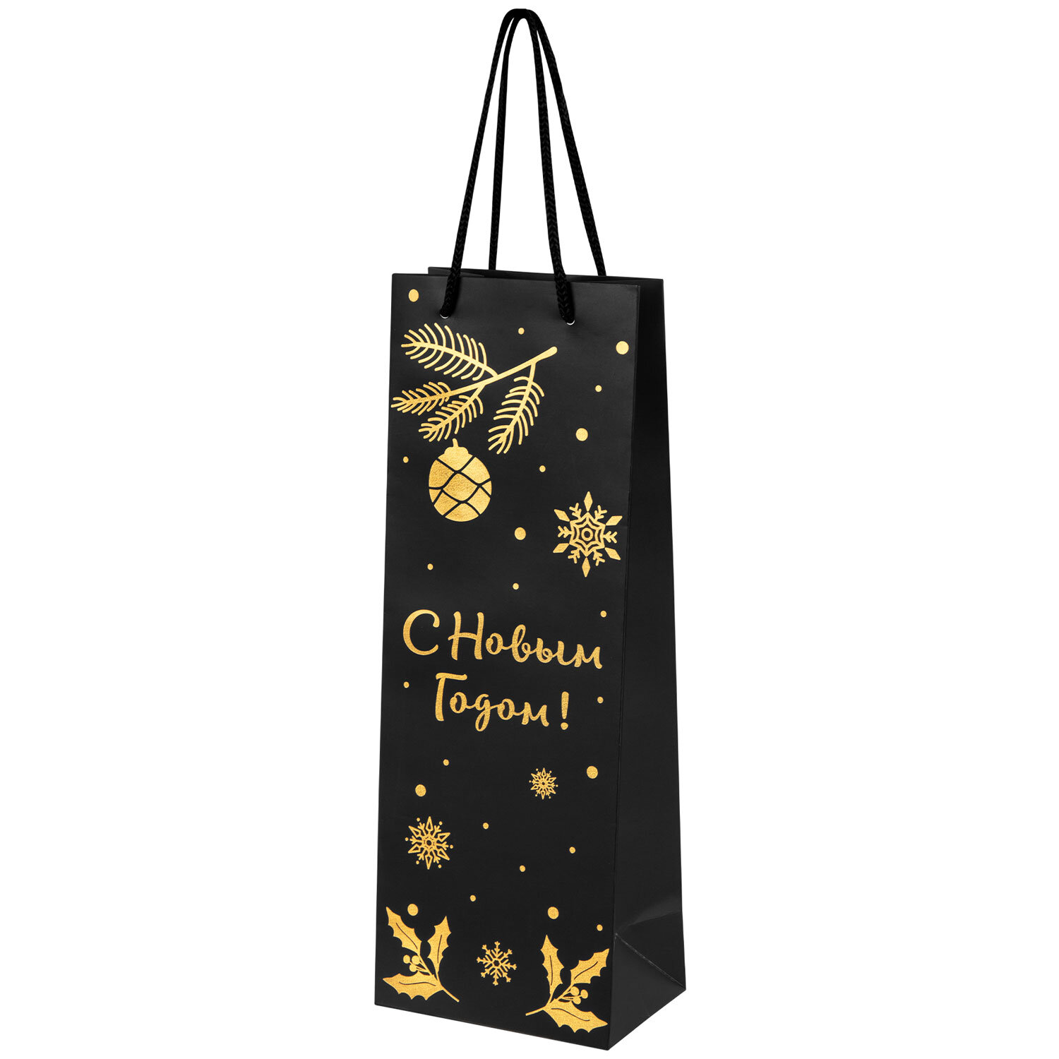 Подарочный новогодний пакет «Bottle #2» ЗОЛОТАЯ СКАЗКА – отличное решение для упаковки любого презента, которое позволит легко и со вкусом оформить выбранный подарок.
