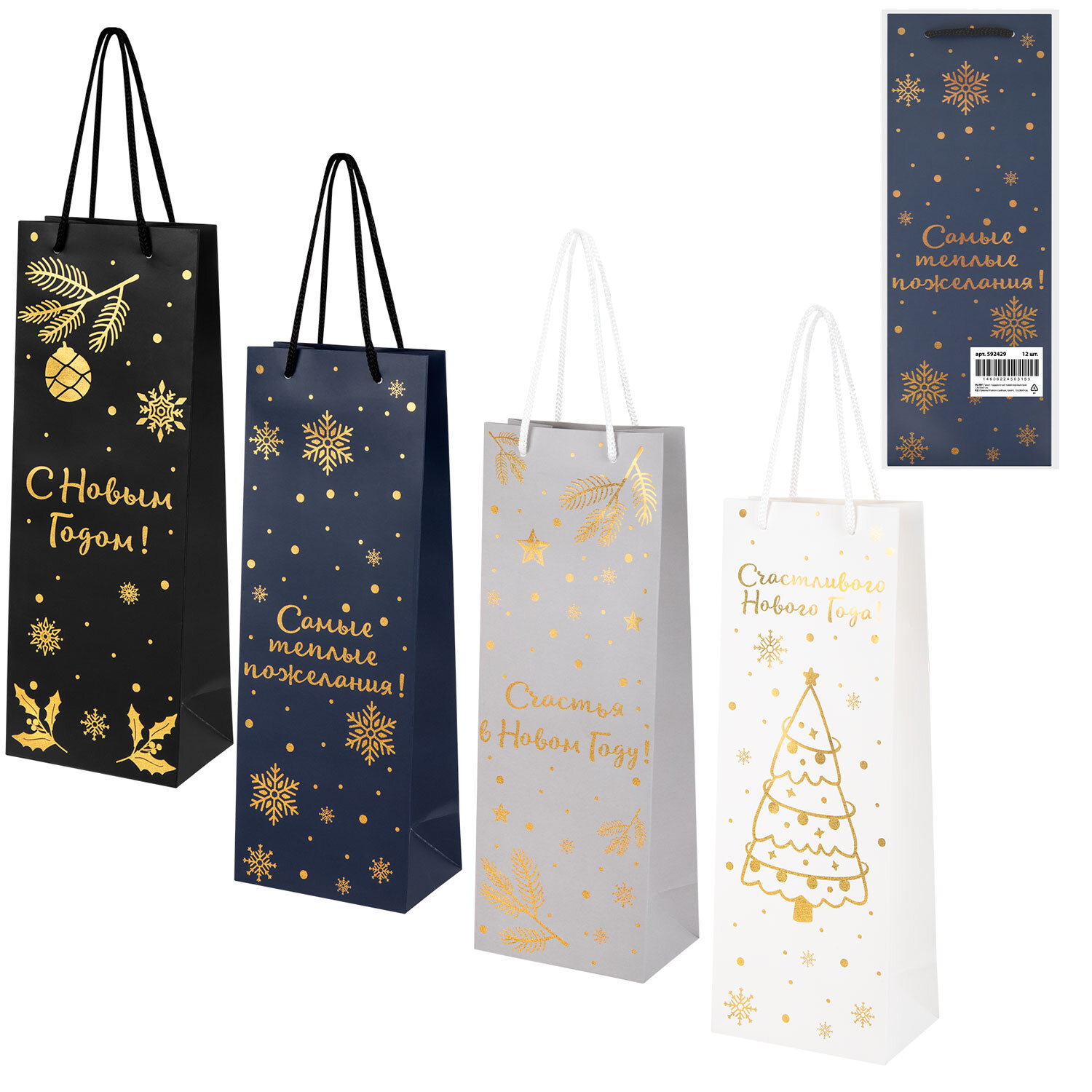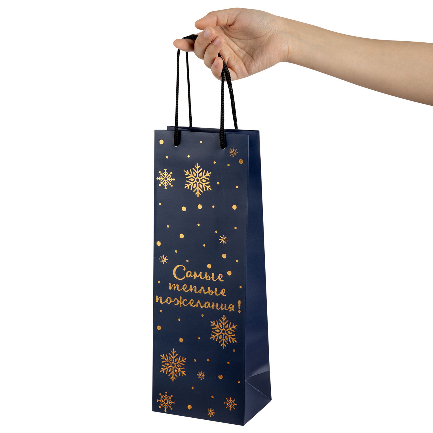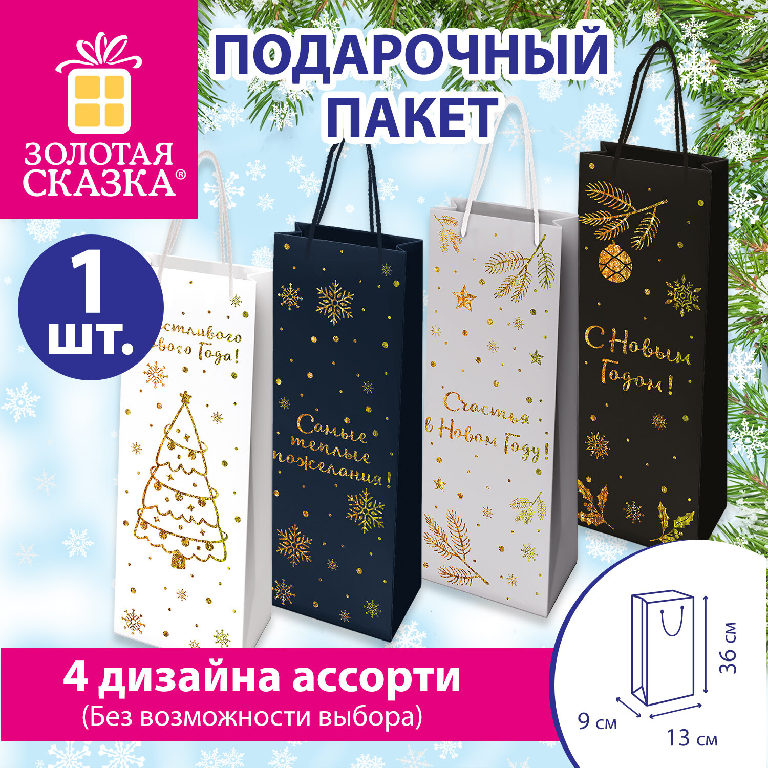 Подарочный новогодний пакет «Bottle #2» ЗОЛОТАЯ СКАЗКА – отличное решение для упаковки любого презента, которое позволит легко и со вкусом оформить выбранный подарок.