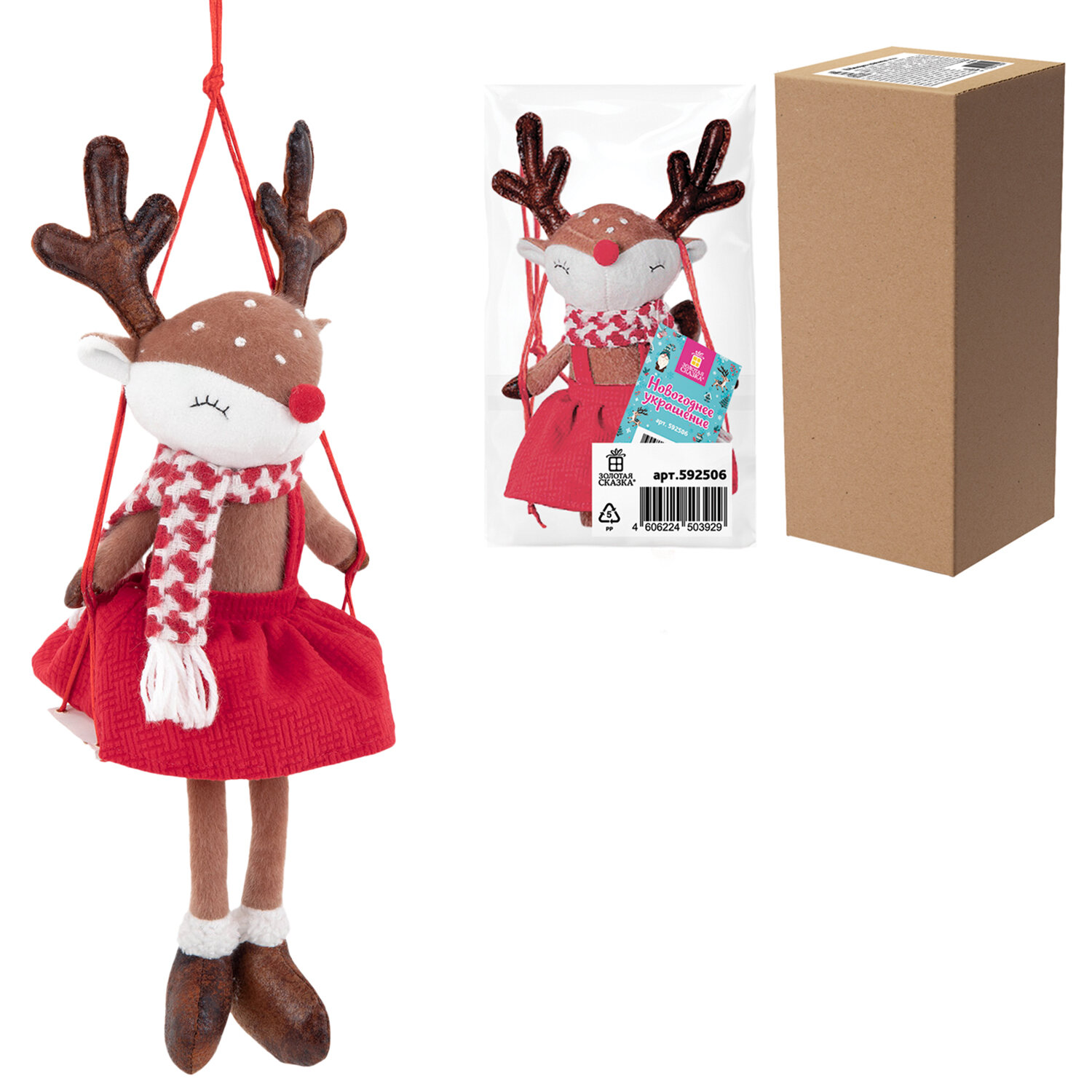 Новогоднее украшение интерьера в виде олененка на качелях ЗОЛОТАЯ СКАЗКА – это идеальный выбор для тех, кто хочет добавить в свой праздничный декор нотку волшебства и очарования.