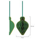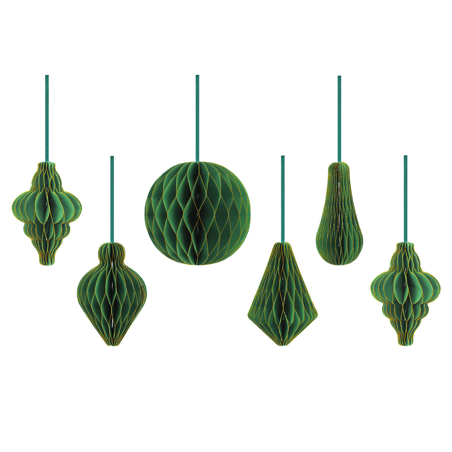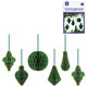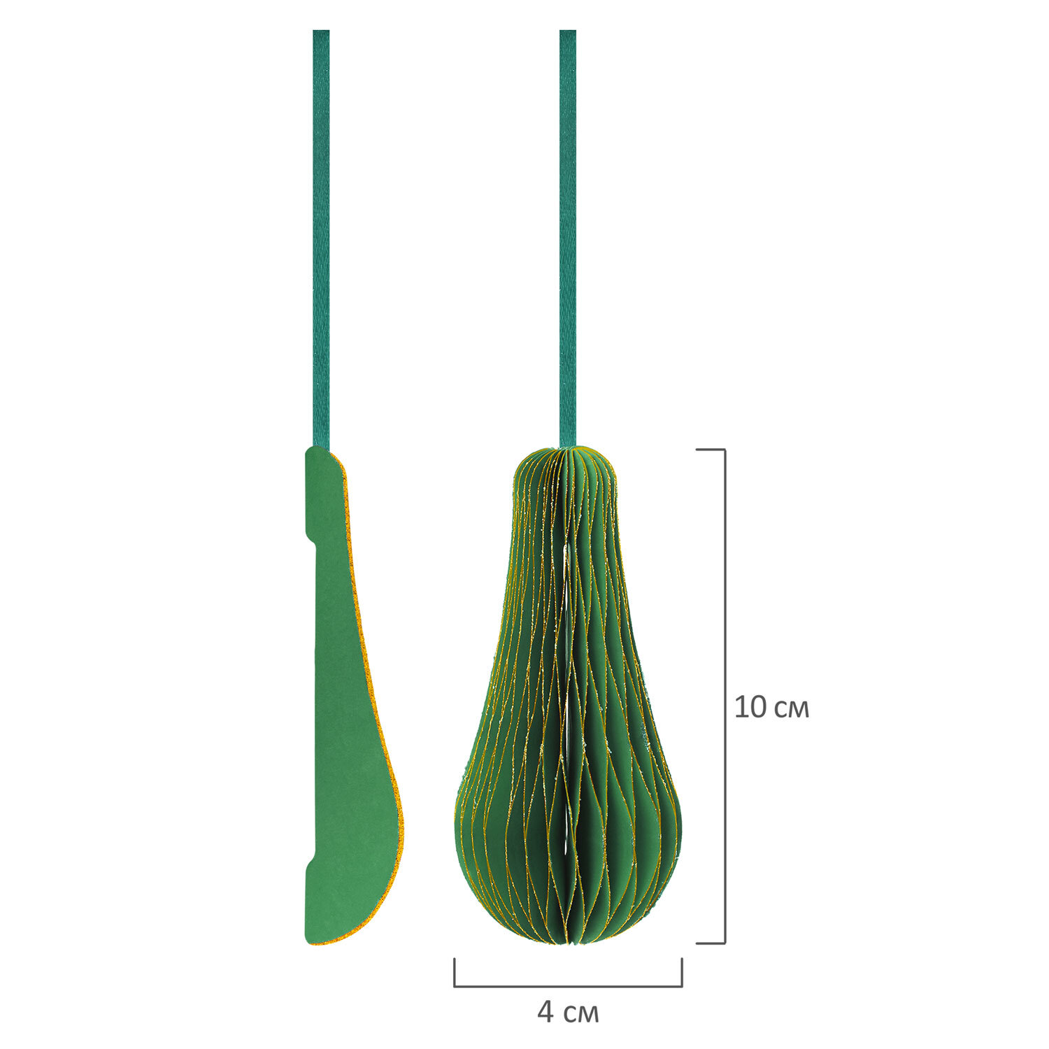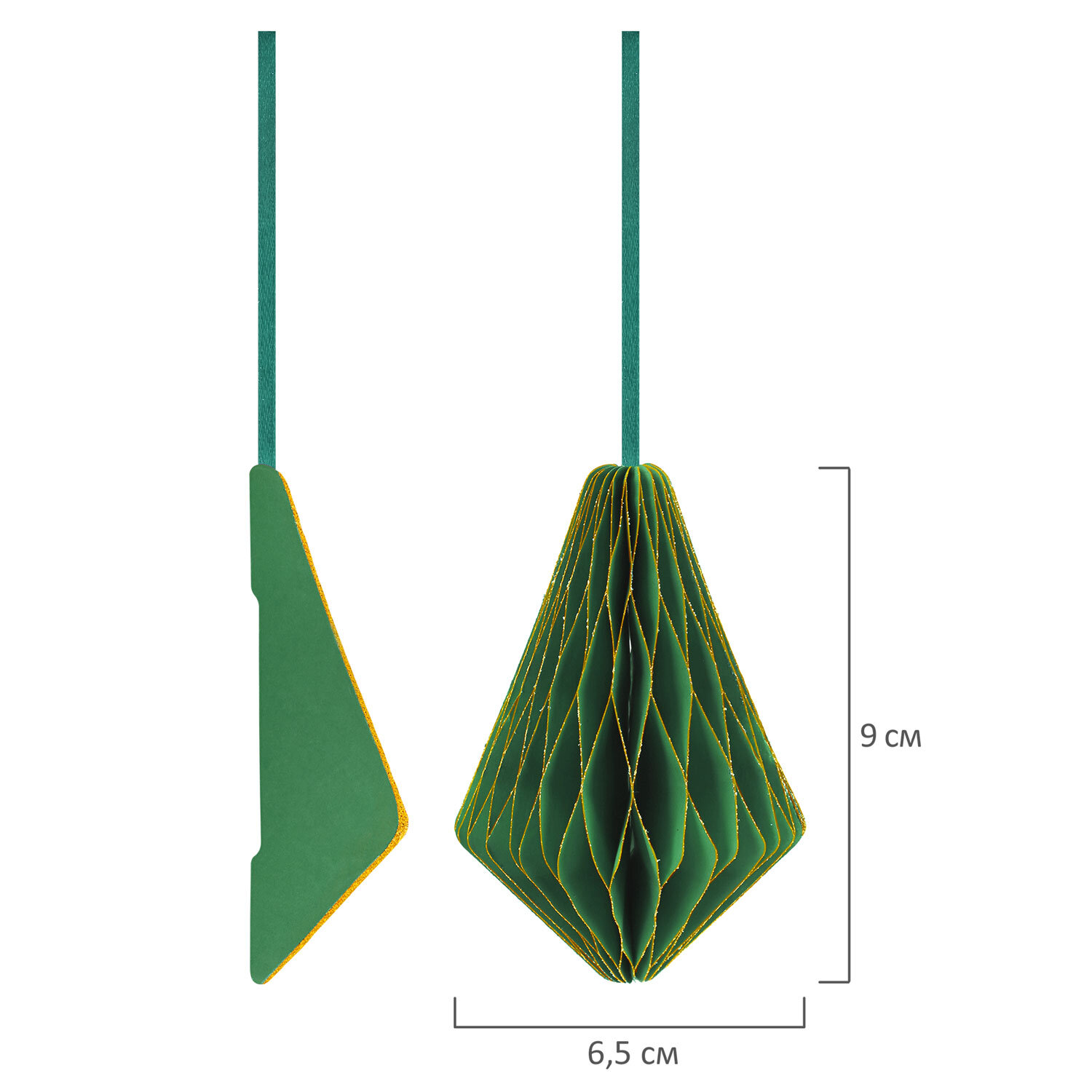 В наборе украшения размером 9х6.5 см, 9х7.5 см (2 шт.), 9.5х6 см, 10х4 см, 10х10 см. Цвет украшений – изумрудный. В верхней части декоративные украшения имеют петлю для подвешивания изделия.