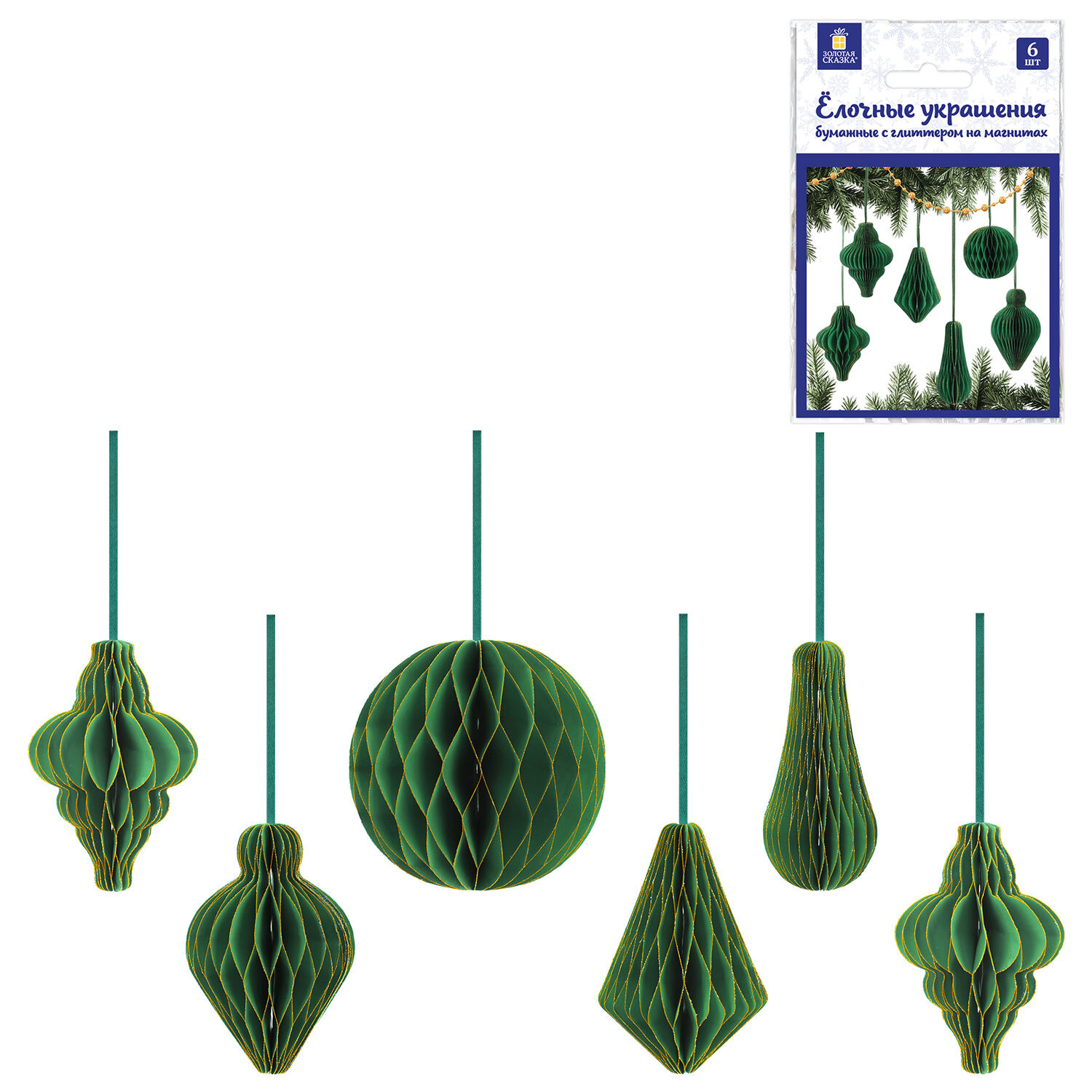 Набор декоративных украшений ЗОЛОТАЯ СКАЗКА для новогодней ели из бумаги разной формы наполнит Ваш дом волшебной атмосферой праздника.