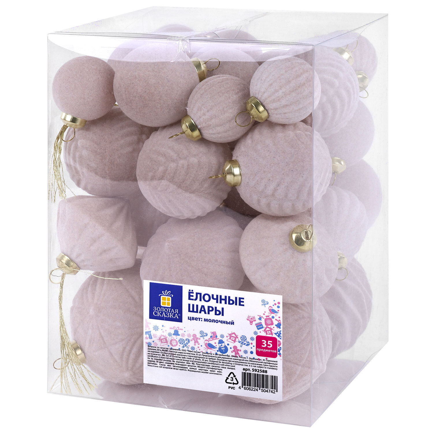 Набор украшений для ели включает в себя 35 предметов разной формы.