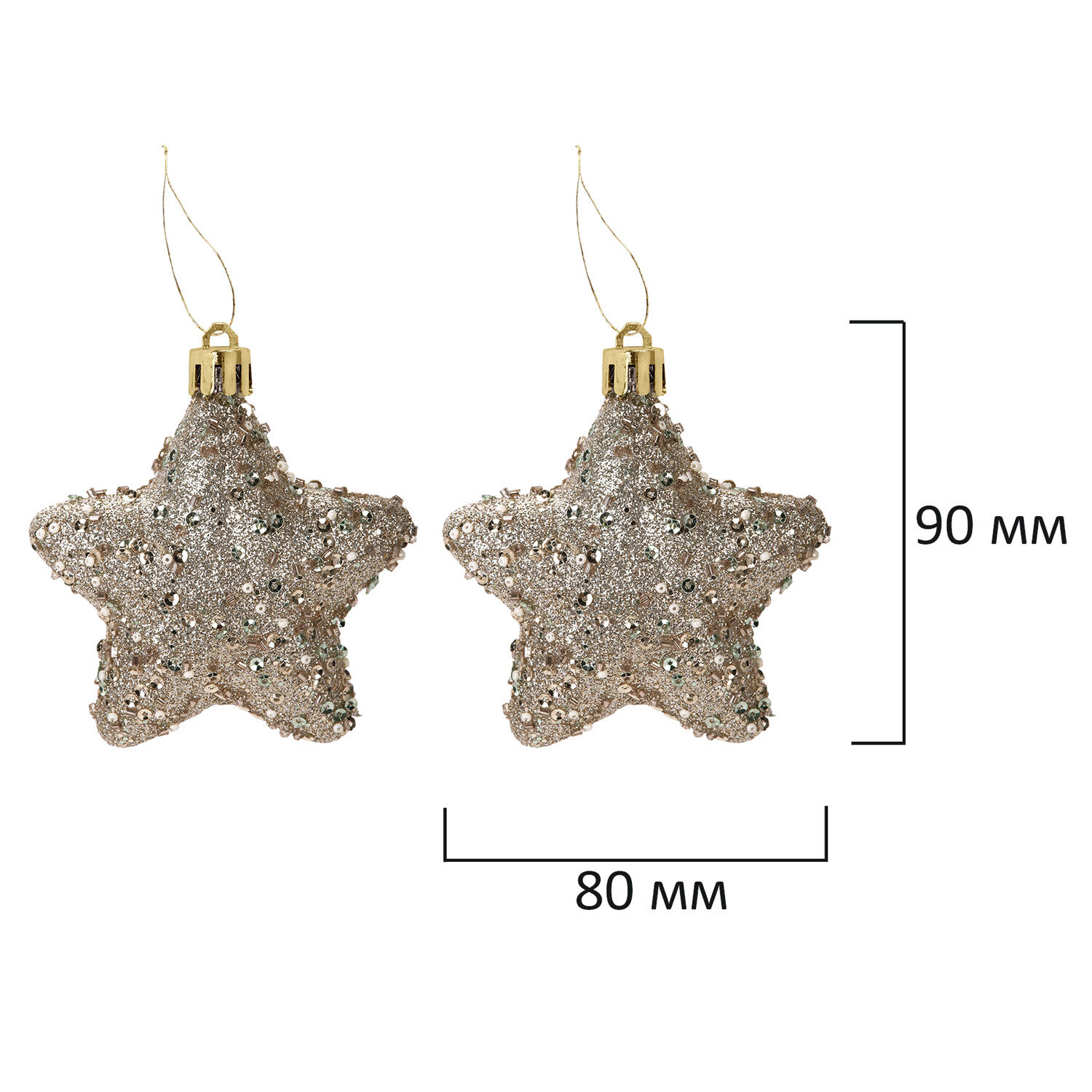 - 2 украшения в форме "звезды" цвета шампань с глиттером (размером 9х8 см),