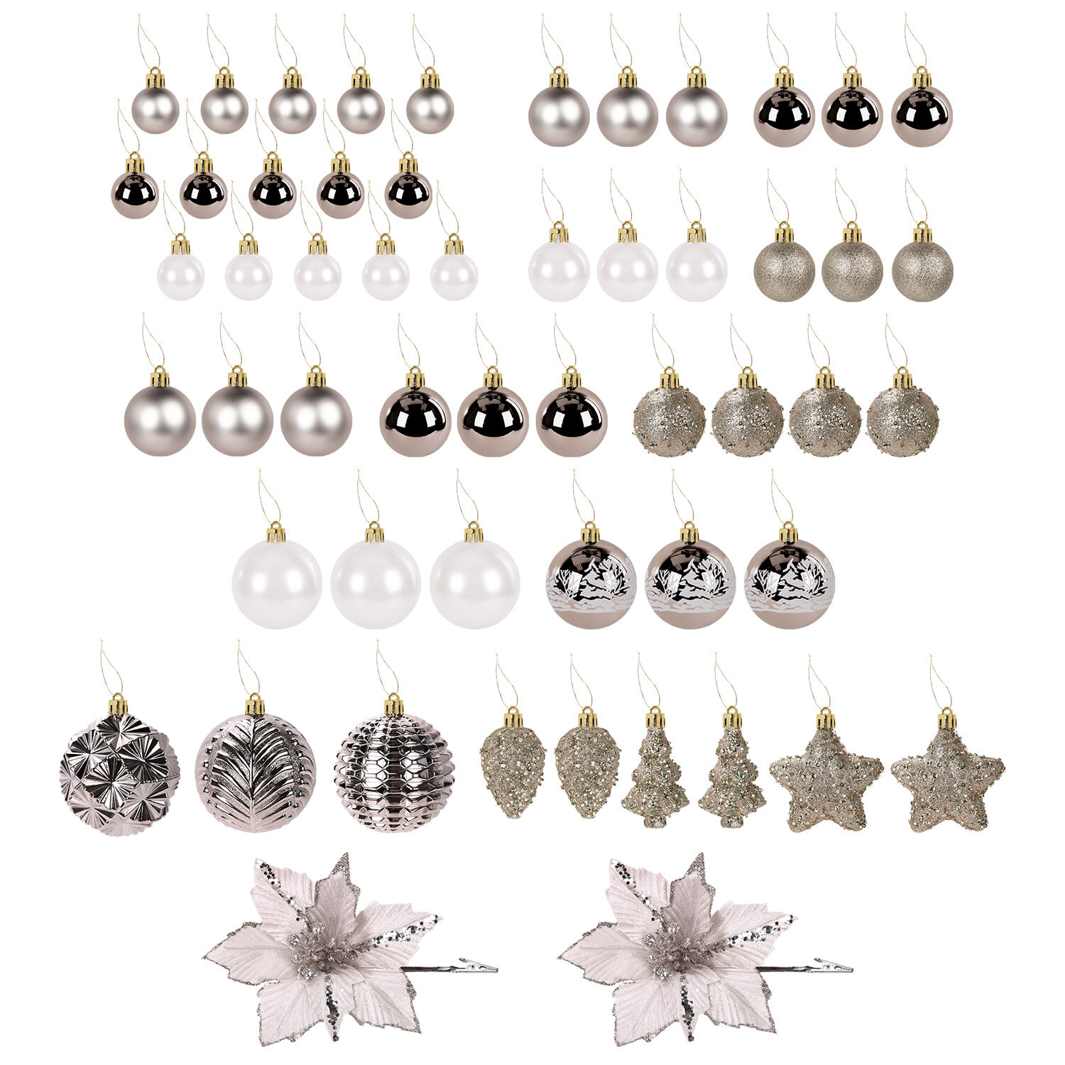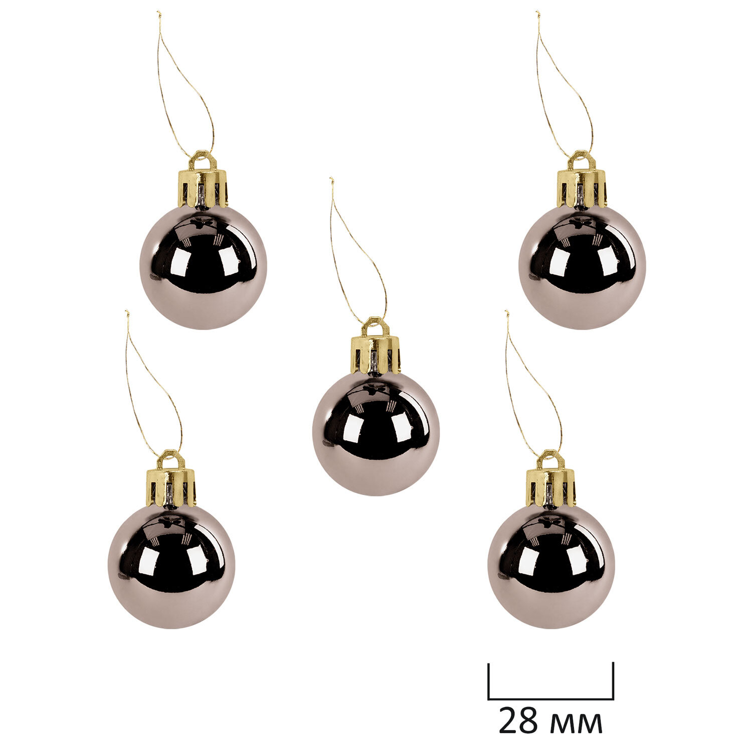 - 5 шаров цвета шампань с глянцевым эффектом (диаметром 2,8 см),