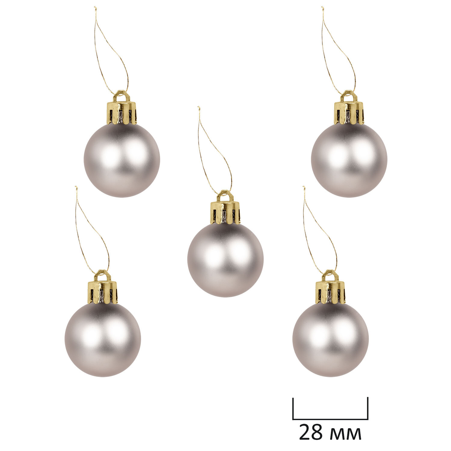 - 5 шаров цвета шампань с матовым эффектом (диаметром 2,8 см),