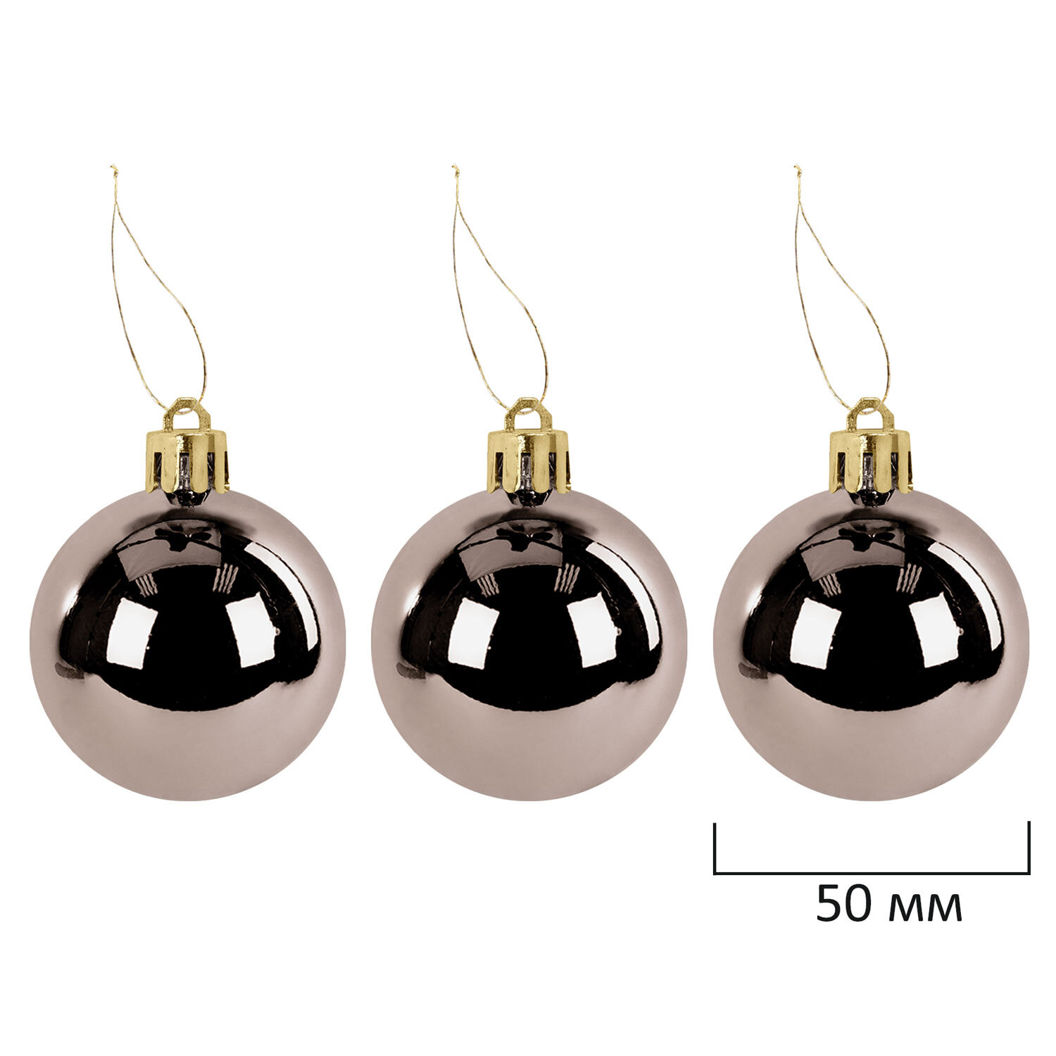 - 3 шара цвета шампань с глянцевым эффектом (диаметром 5 см),