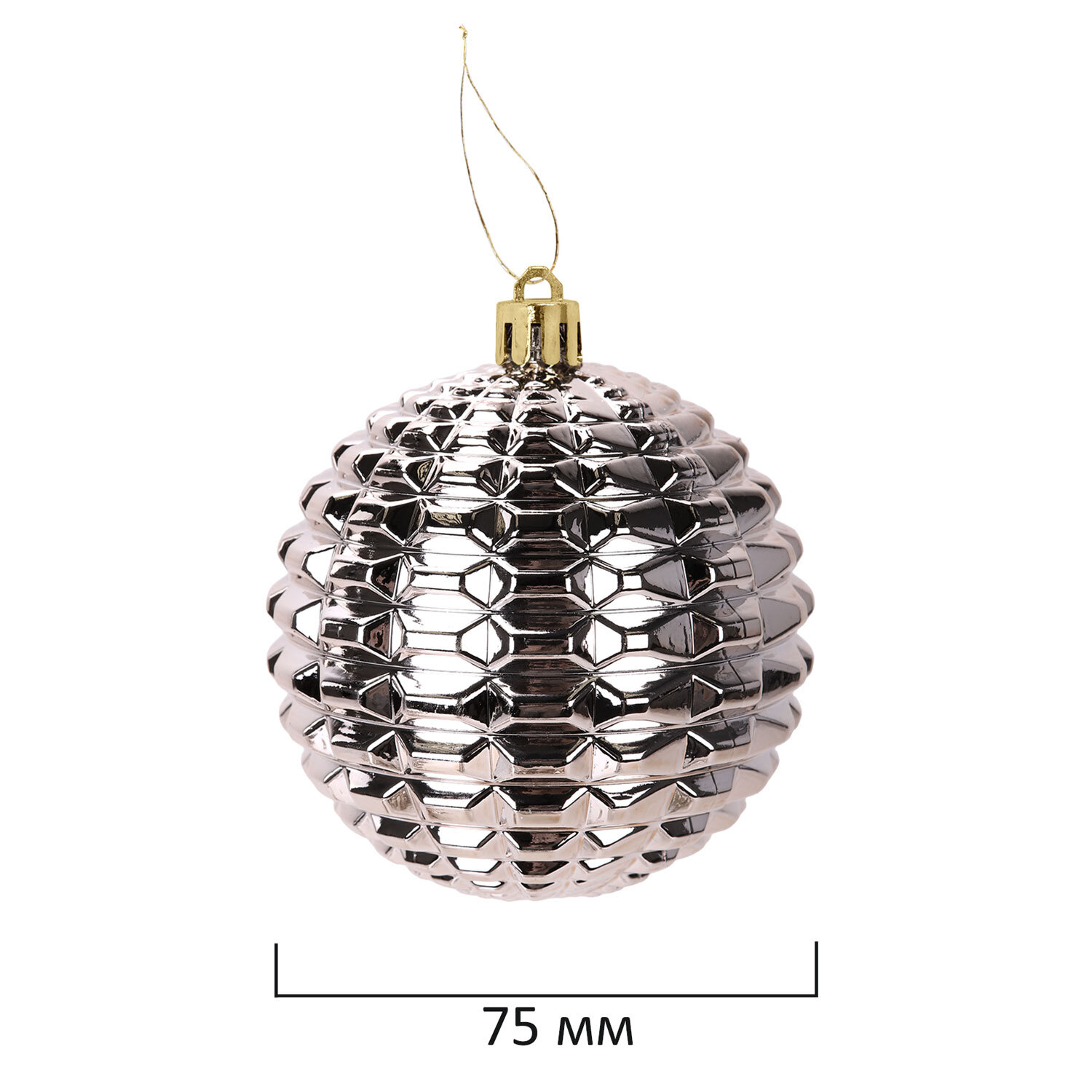 - 3 шара цвета шампань с глянцевым эффектом и объемным рисунком (диаметром 7,5 см),