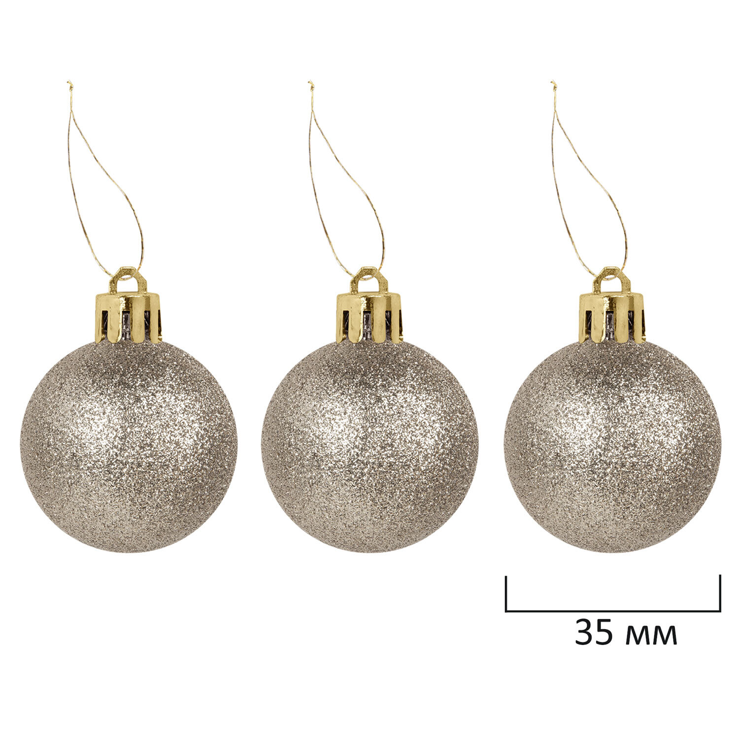 - 3 шара цвета шампань с глиттером (диаметром 3,5 см),