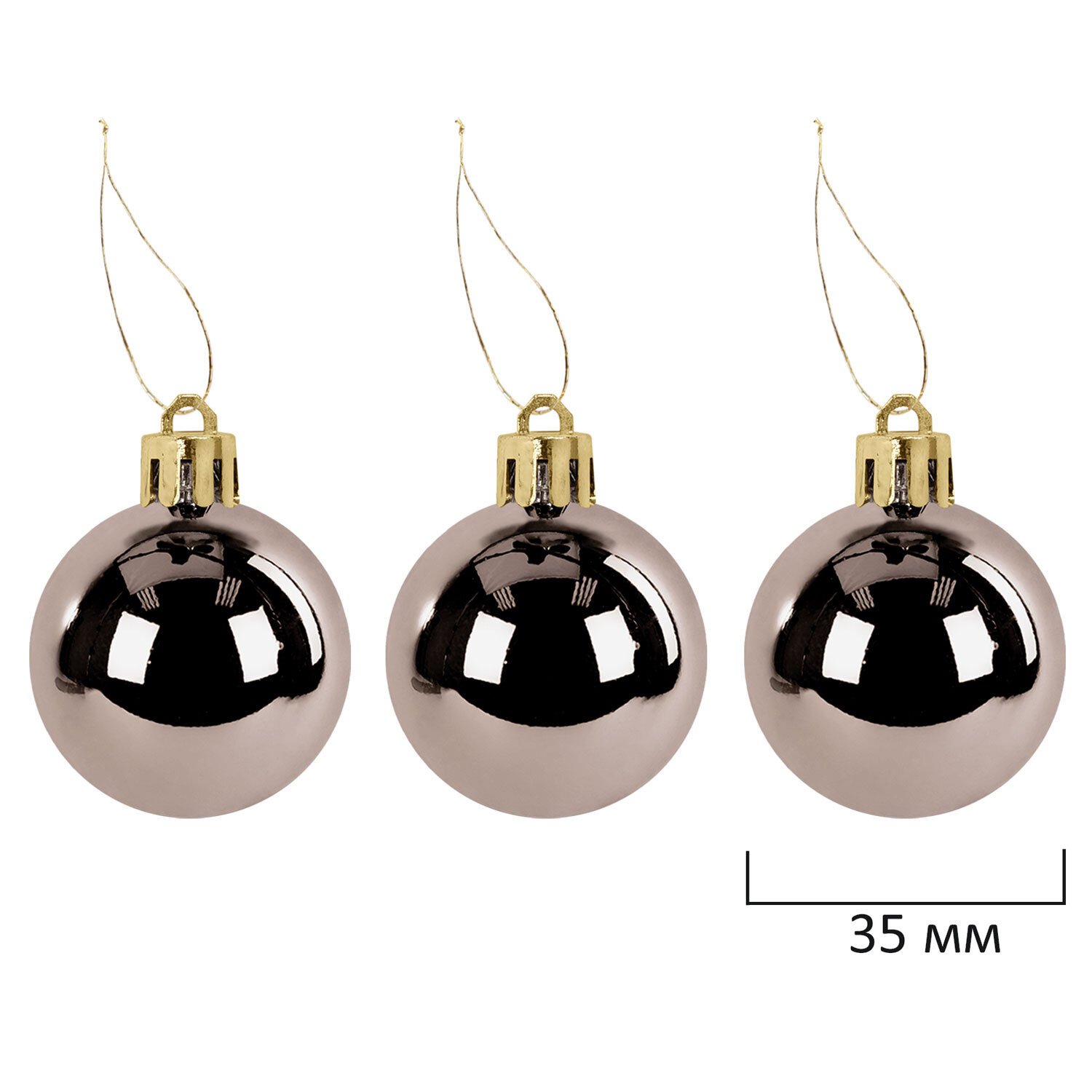 - 3 шара цвета шампань с глянцевым эффектом (диаметром 3,5 см),