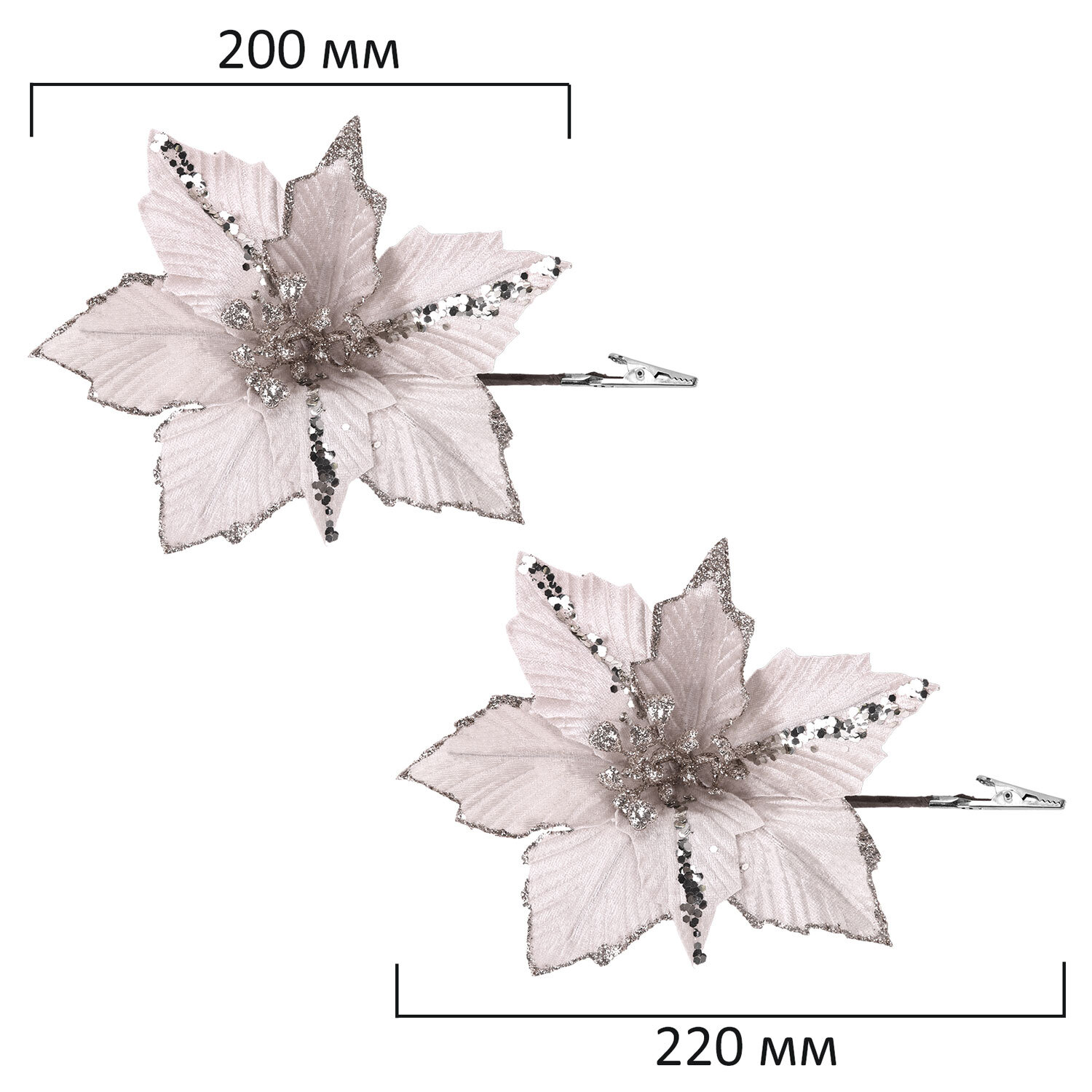- 2 украшения цвета шампань в форме цветка с глиттером (размером 22 см).