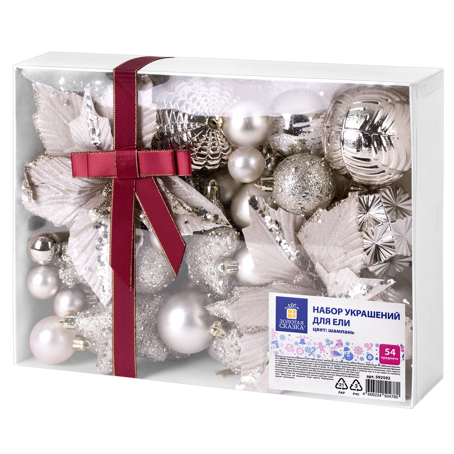 Наборы украшений для ели ЗОЛОТАЯ СКАЗКА позволят с легкостью и со вкусом украсить новогоднюю ель в едином стиле. Наборы упакованы в элегантную подарочную коробку.